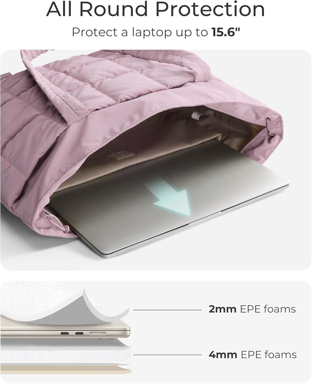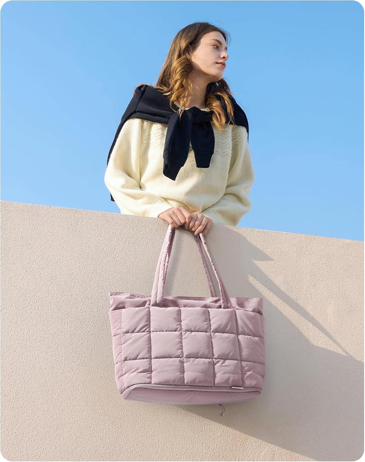 BAGSMART Tote Bag for Women, Lightweight Puffy Tote Bag with Compartments Shoulder Bag Handbag for Travel, Work, Gym | Lightweight, Puffy, Tote Bag with Compartments, Quilted, for Travel, Work(Dark Pink)