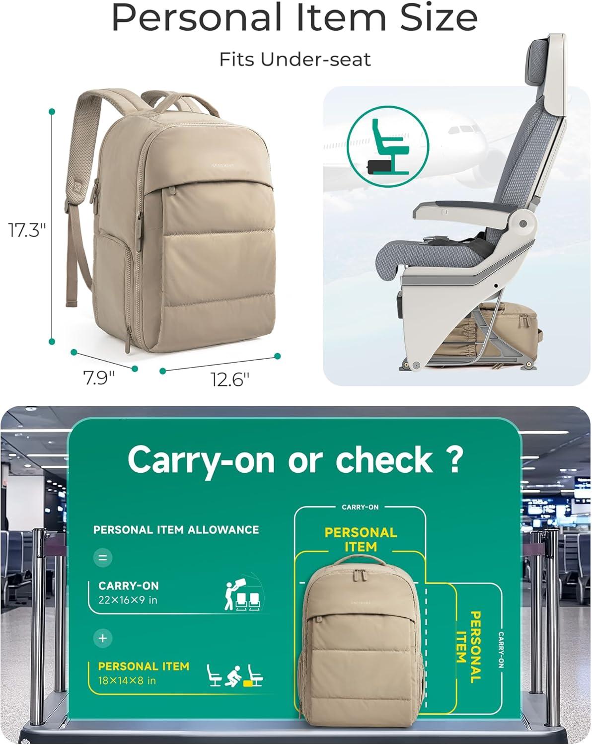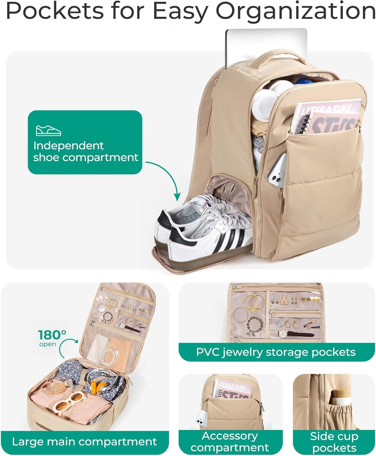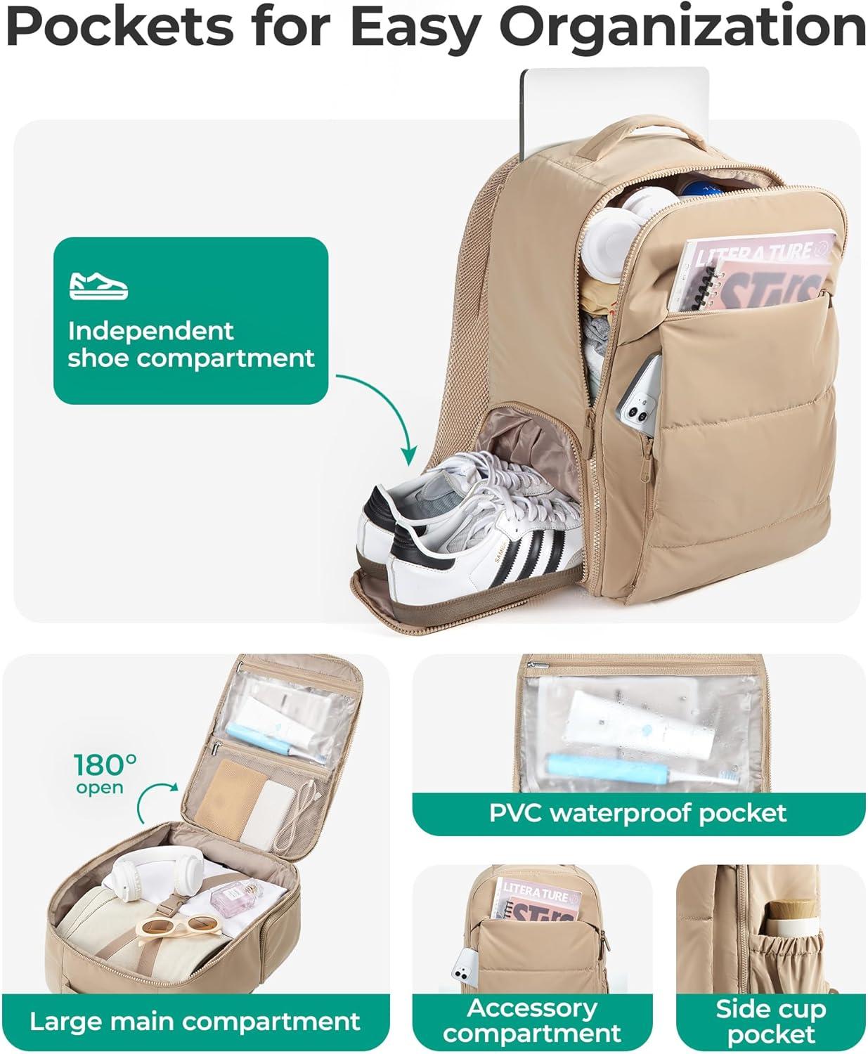 BAGSMART 30L Travel Backpack for Women, Carry on Backpack for Airplanes, Gym Backpack with Shoe Compartment, Lightweight Travel Bag Fits 15.6 Inch, Water-Resistant, Chocolate(Beige)