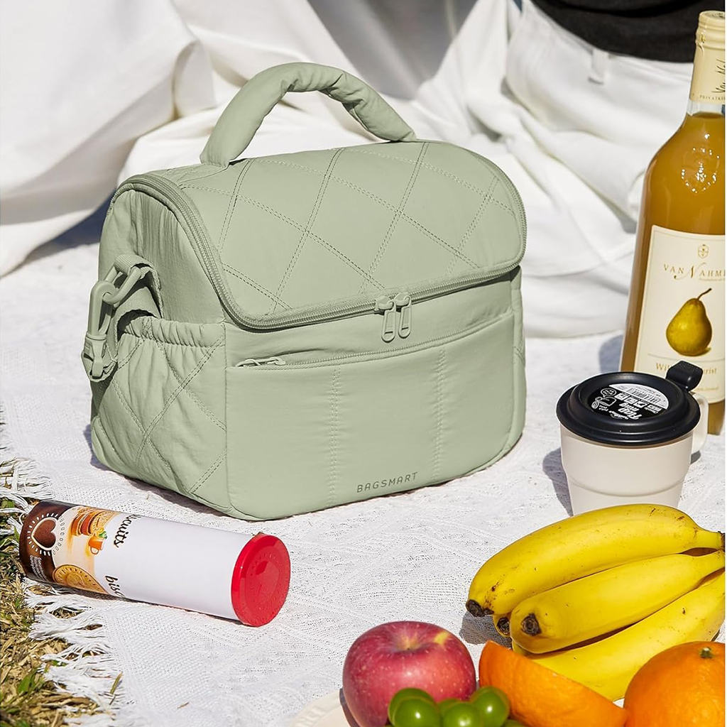BAGSMART Expandable Tote Bag for Women, Puffer Work Tote Handbag, Quilted Carry On Bag for Travel Gym(Purple)