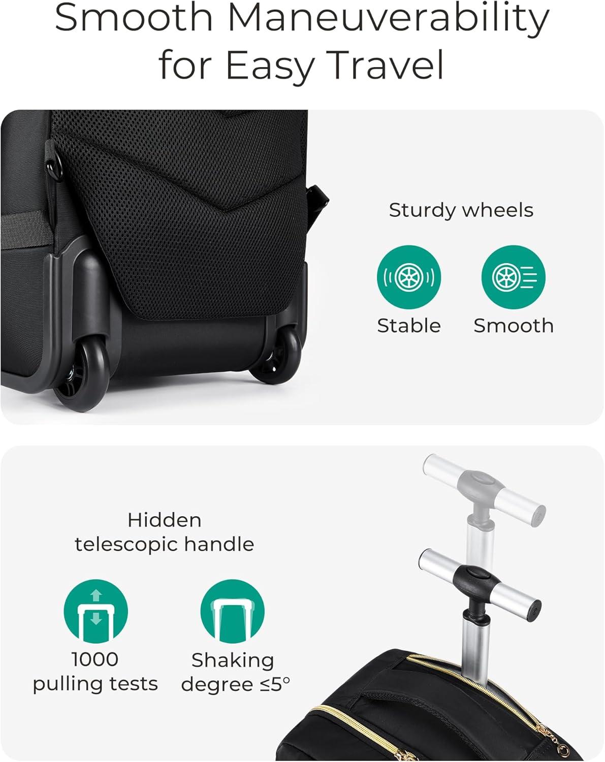 BAGSMART Rolling Backpack for Women, Wheeled Backpack with Packing Cube, Travel Back pack with Wheels, Carry On Suitcase Bag 17 Inch Large Roller Daypack, Black(Black)