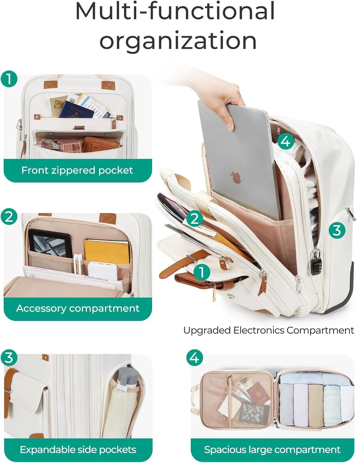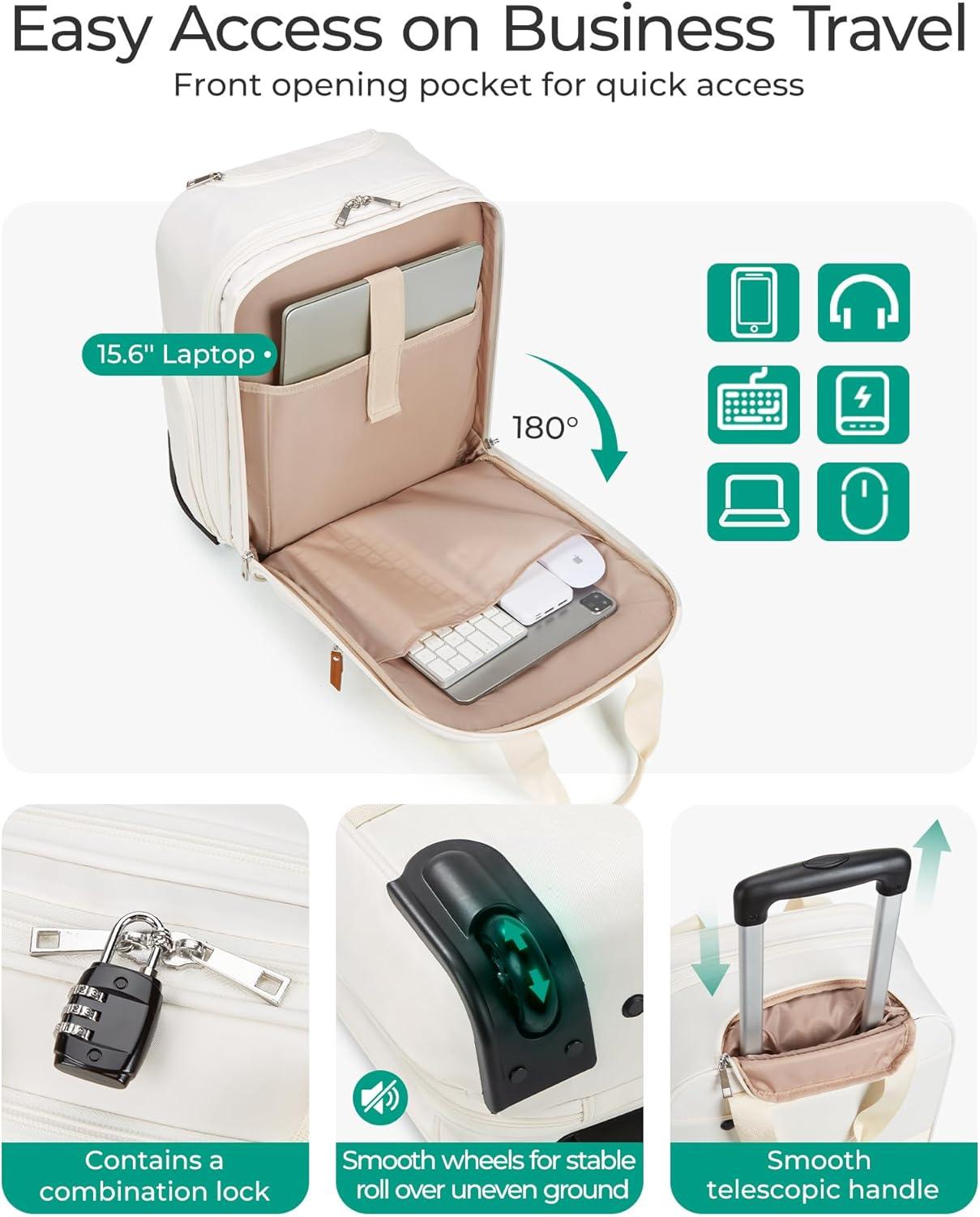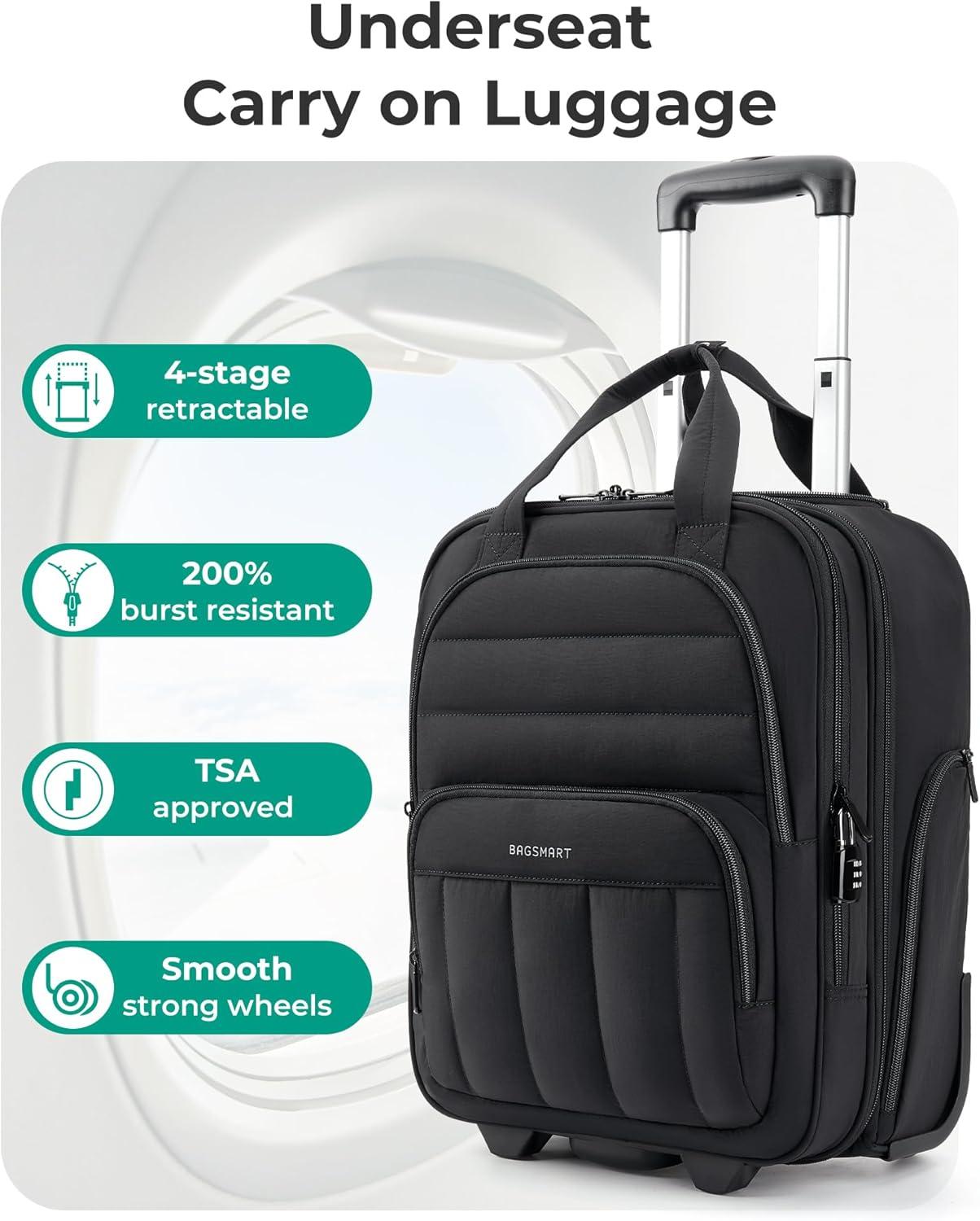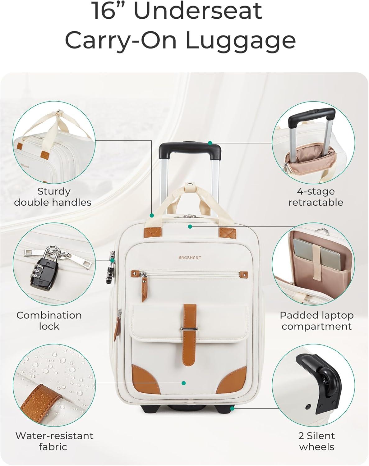 BAGSMART Carry on Luggage with Wheels, 16-inch Underseat Travel Suitcase Airline approved, Lightweight Softside Carry-on Luggage for Airplanes Women Overnight Rolling Bags for Short Trip, Light Beige(Beige)