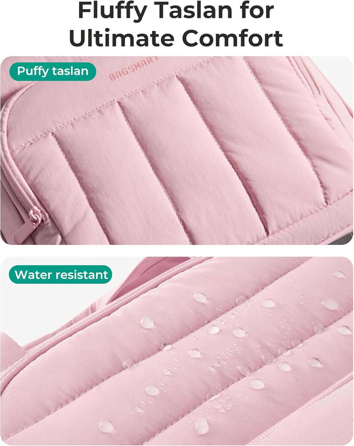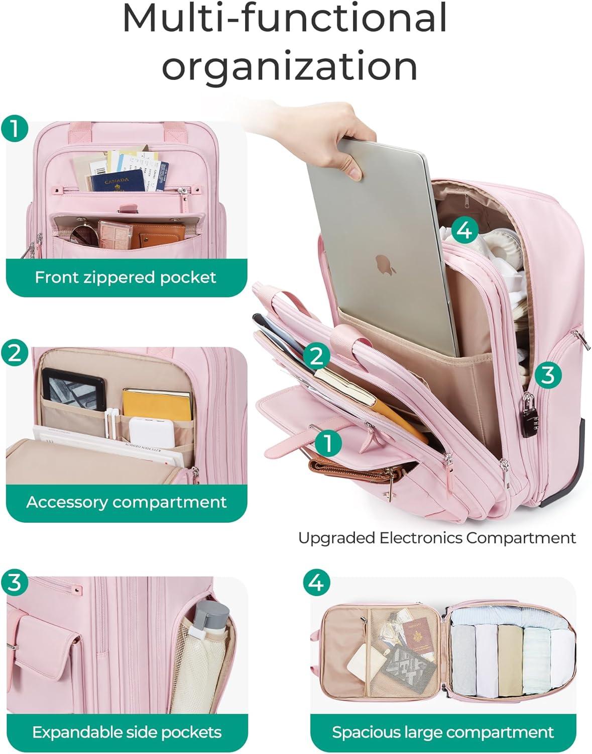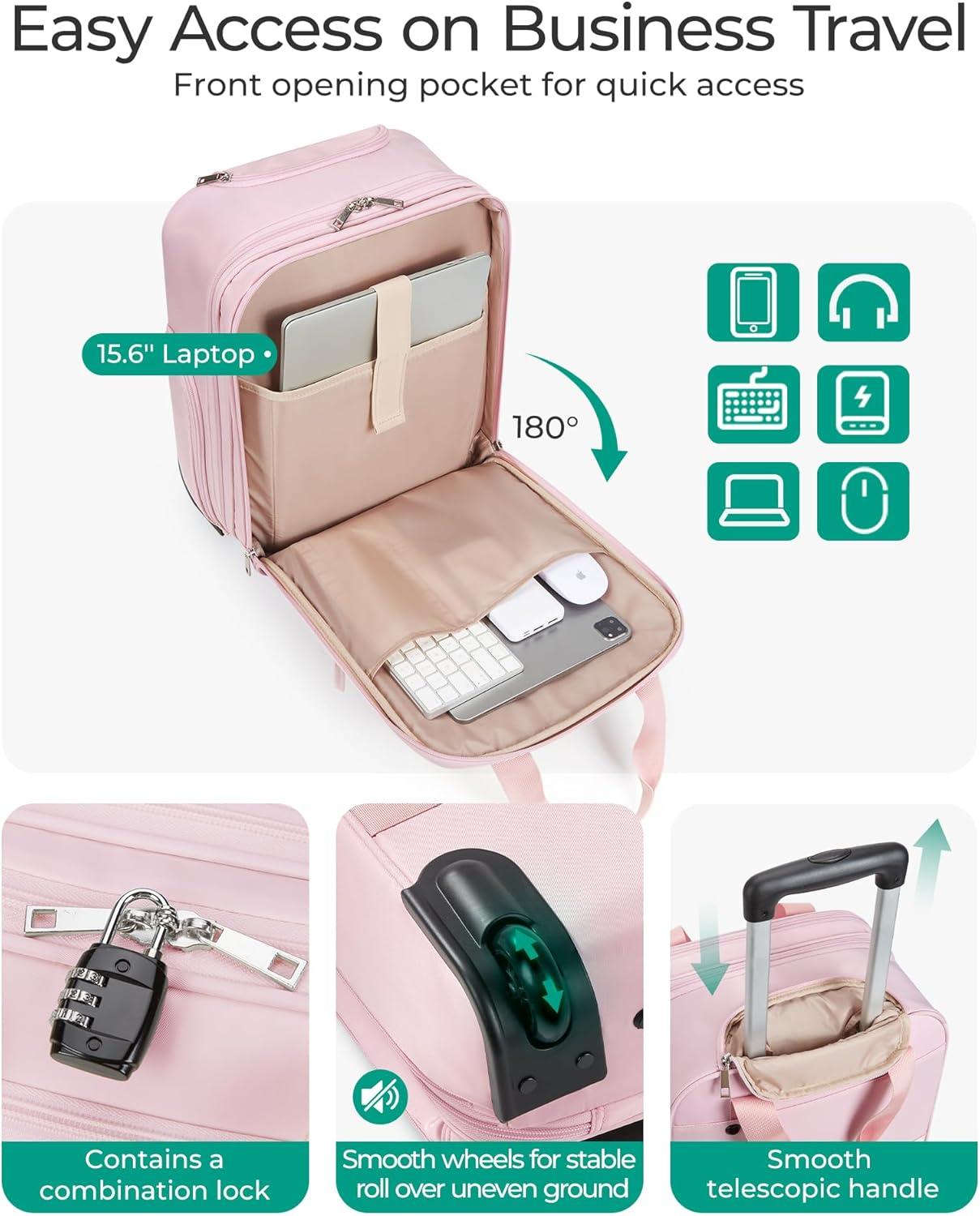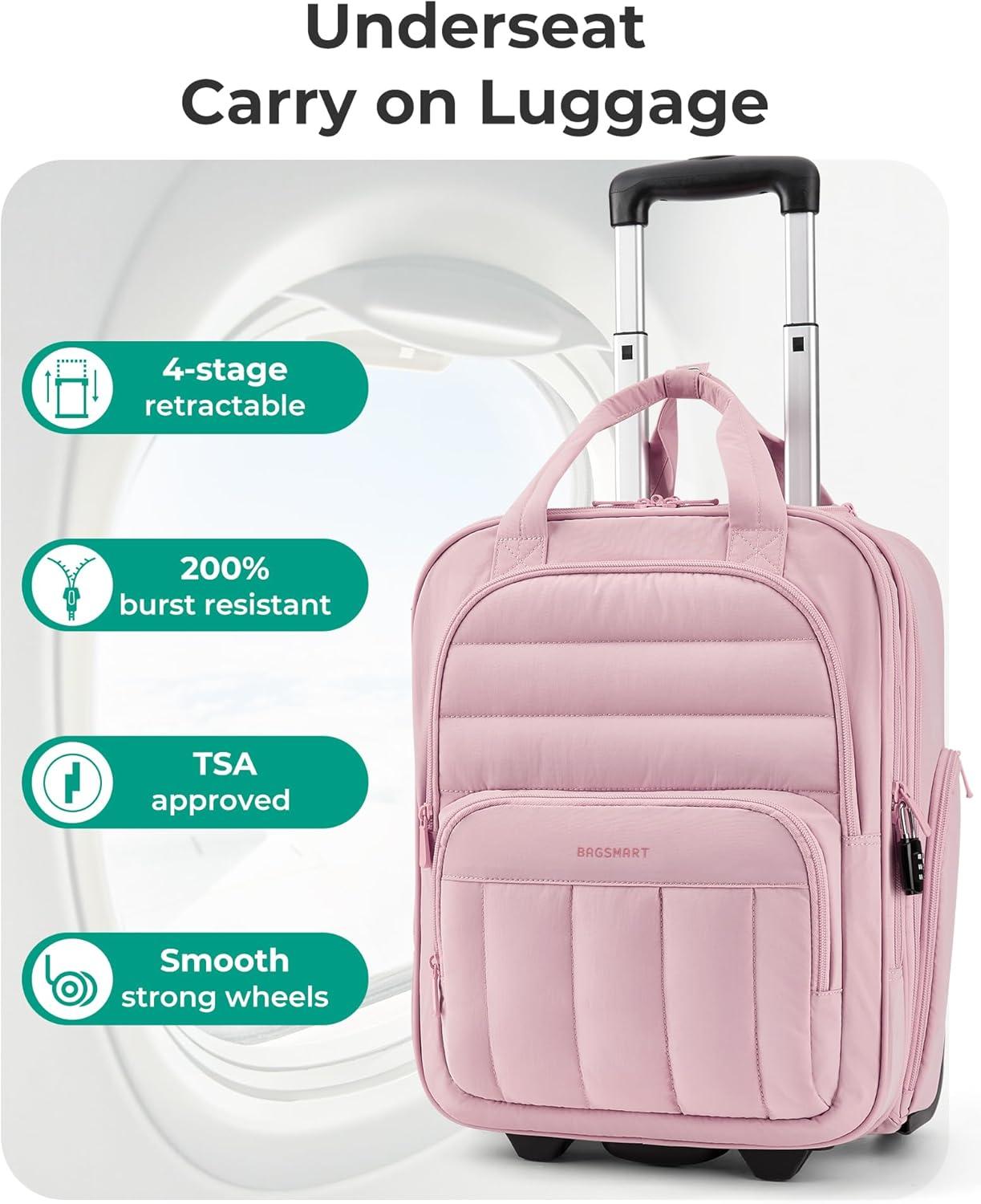 BAGSMART Carry on Luggage with Wheels, 16-inch Underseat Travel Suitcase Airline approved, Lightweight Softside Carry-on Luggage for Airplanes Women Overnight Rolling Bags for Short Trip, Light Beige(Pink)
