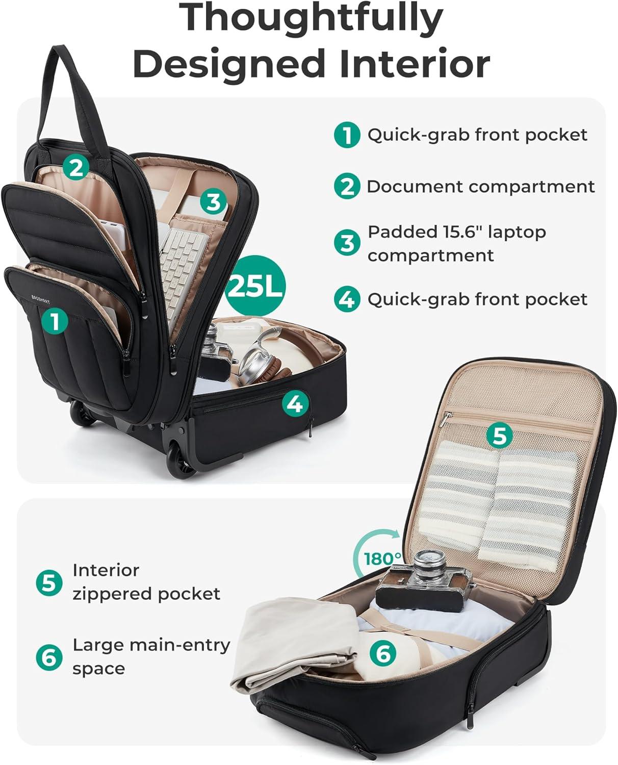 BAGSMART Small Underseat Carry on Luggage with Wheels, 16-inch Small Under Seat Luggage, Lightweight Travel Luggage Travel Suitcase for Women, Personal Item Bag, Brown(Black)
