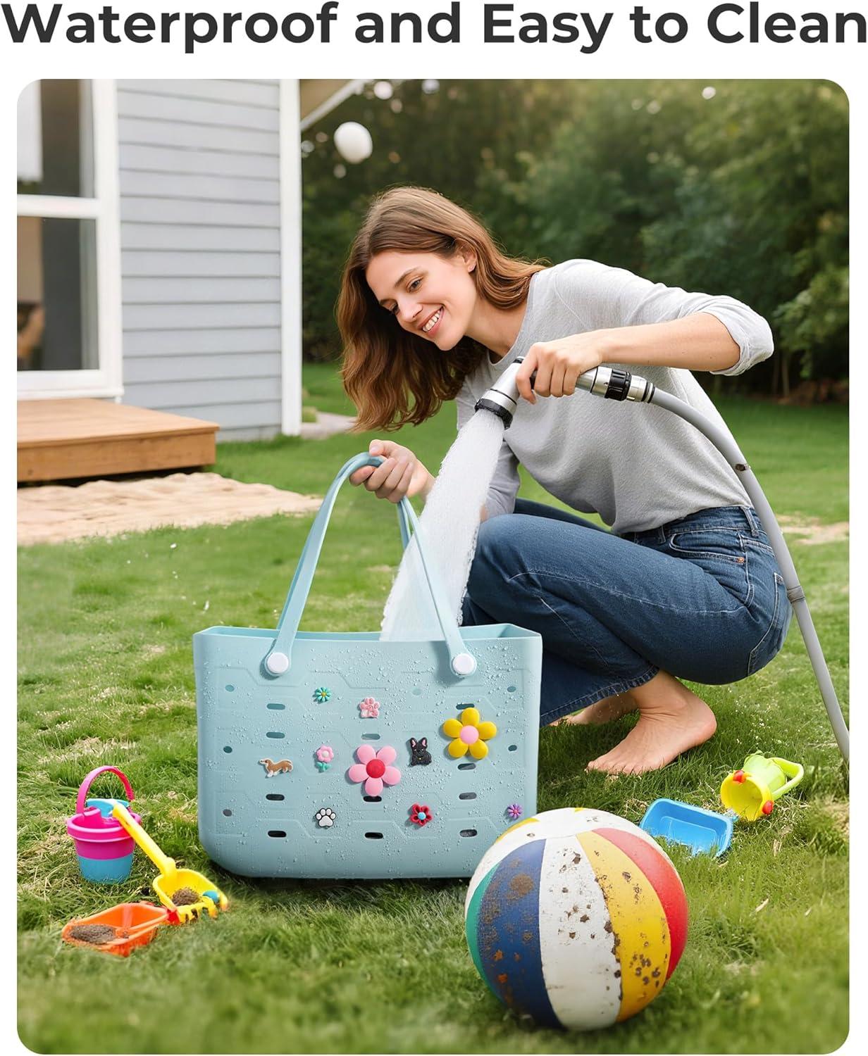 BAGSMART Beach Bag for Women, Mesh Tote Bags with Zipper, Sandproof Vacation Essentials with Cooler for Swim Cruise Pool(Sky Blue)