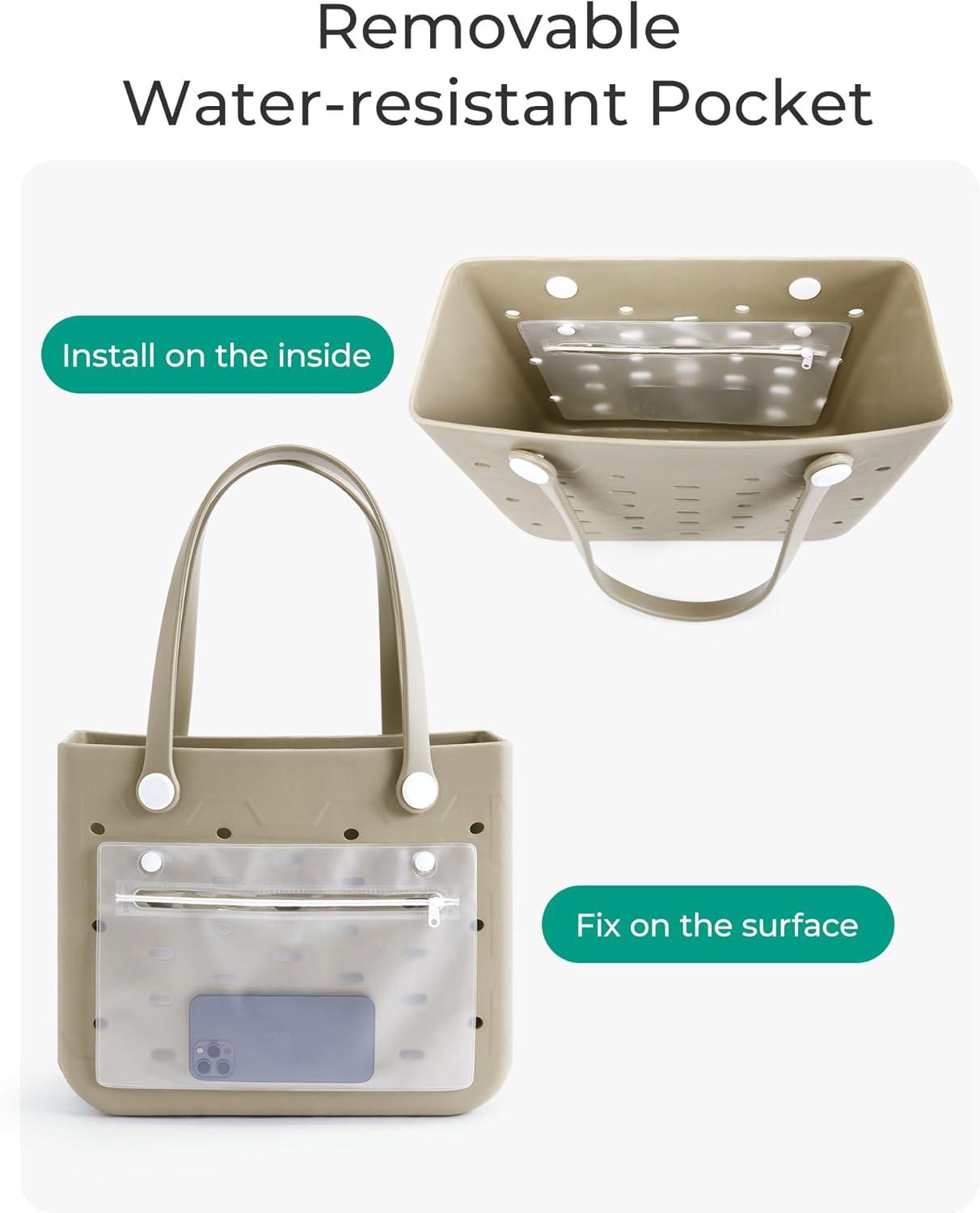 BAGSMART Beach Bag for Women, Mesh Tote Bags with Zipper, Sandproof Vacation Essentials with Cooler for Swim Cruise Pool(Beige)