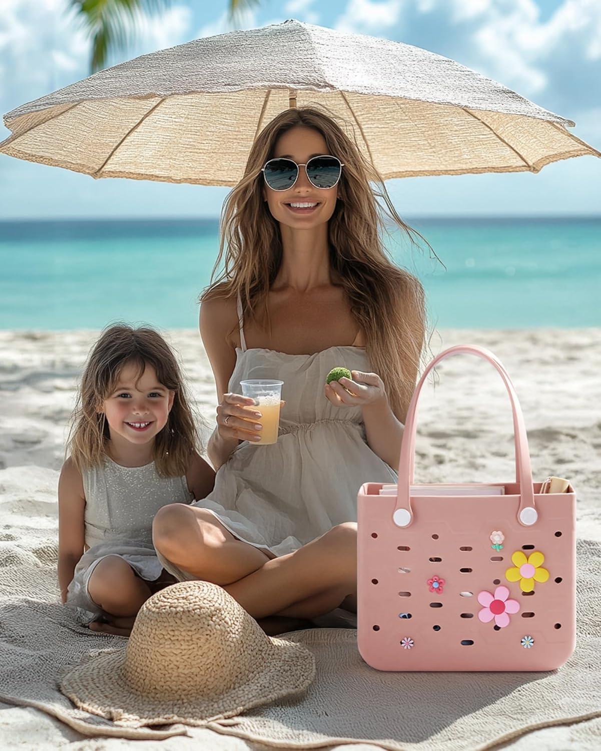 BAGSMART Beach Bag for Women, Mesh Tote Bags with Zipper, Sandproof Vacation Essentials with Cooler for Swim Cruise Pool(Black)