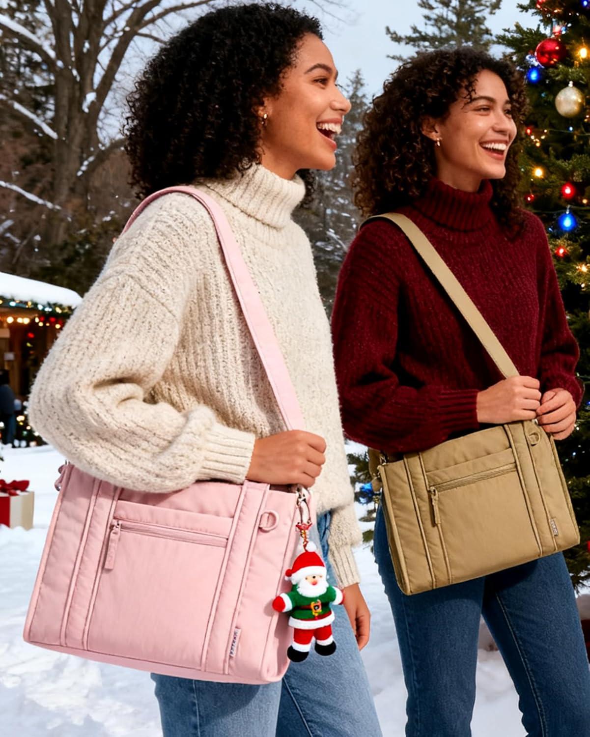 BAGSMART Small Tote Bag for Women, Crossbody Bag with Zipper, Crush Bow Purses for Travel Work College(Light Pink)