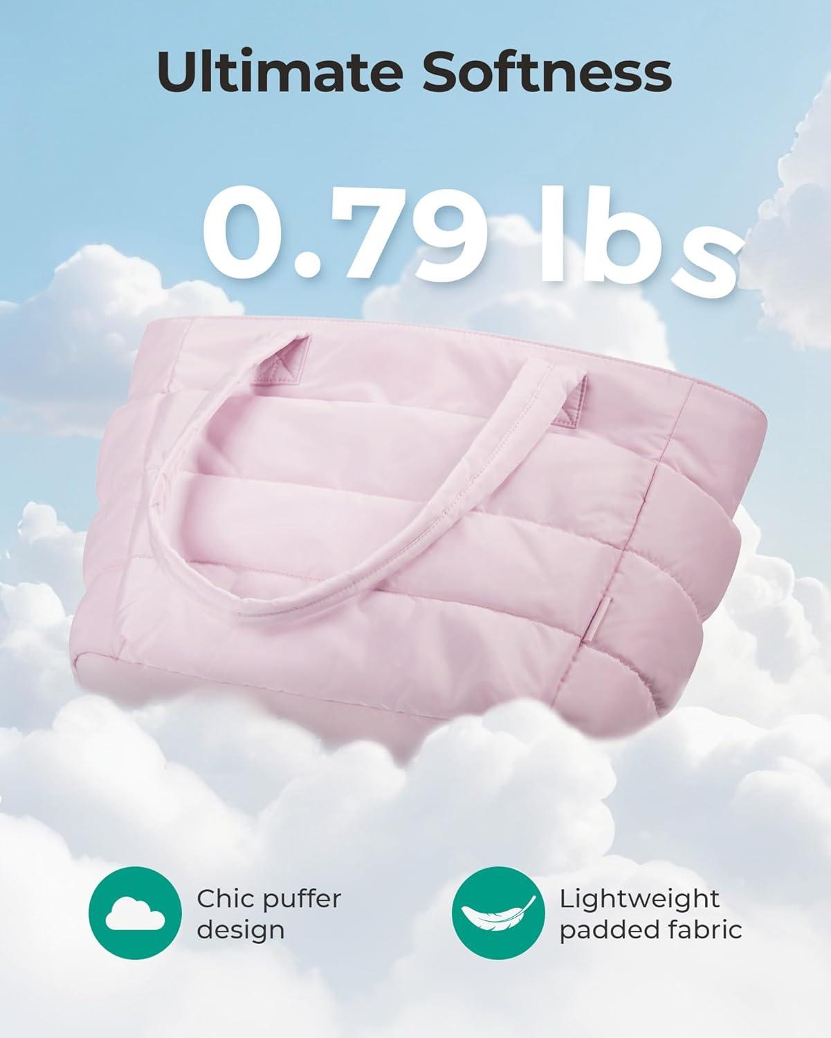BAGSMART Tote Bag for Women, Lightweight Puffy Tote Bag with Compartments Shoulder Bag Handbag for Travel, Work, Gym | Lightweight, Puffy, Tote Bag with Compartments, Quilted, for Travel, Work(Pink)