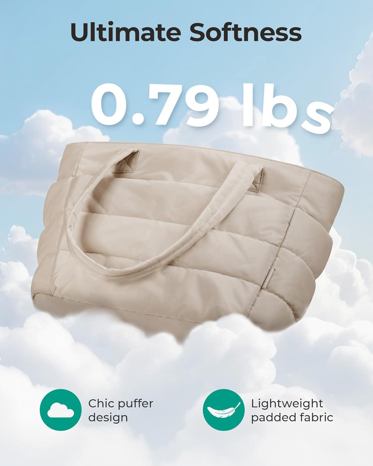 BAGSMART Tote Bag for Women, Lightweight Puffy Tote Bag with Compartments Shoulder Bag Handbag for Travel, Work, Gym | Lightweight, Puffy, Tote Bag with Compartments, Quilted, for Travel, Work(Beige)