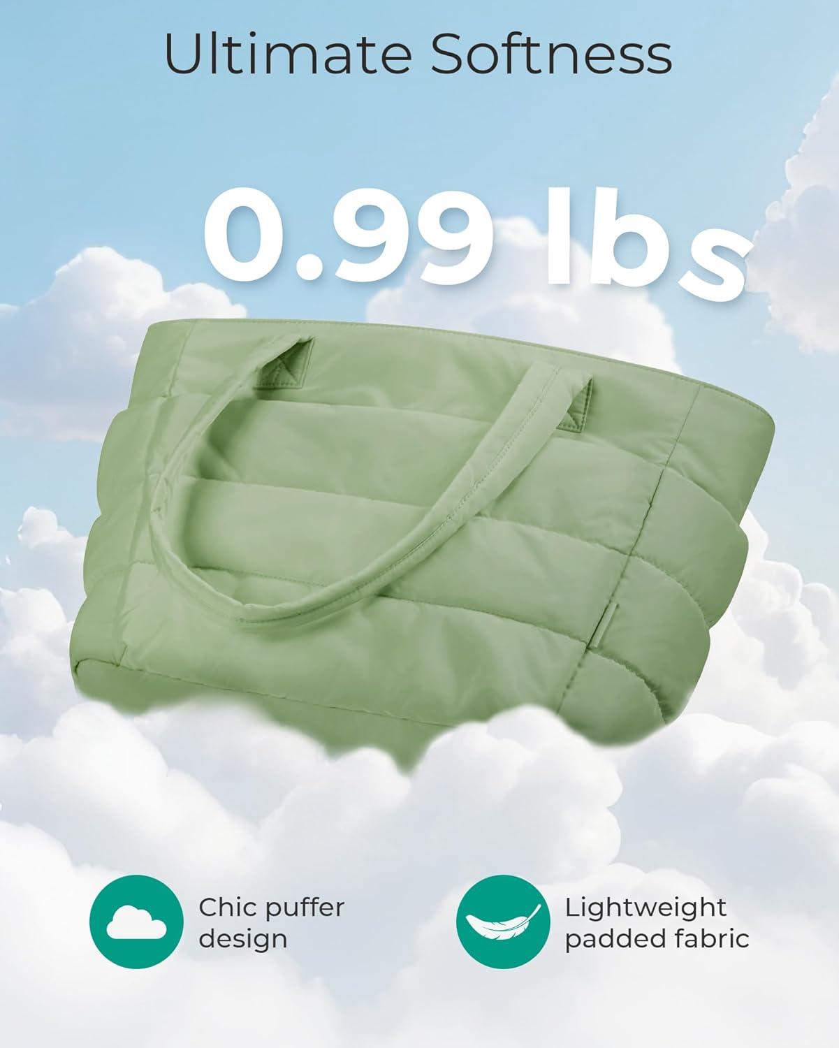 BAGSMART Tote Bag for Women, Lightweight Puffy Tote Bag with Compartments Shoulder Bag Handbag for Travel, Work, Gym | Lightweight, Puffy, Tote Bag with Compartments, Quilted, for Travel, Work(Green)
