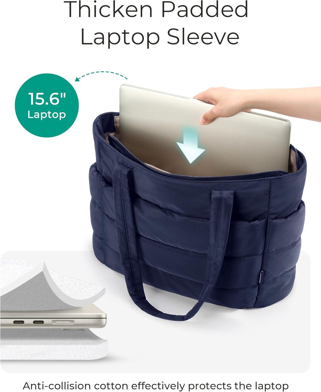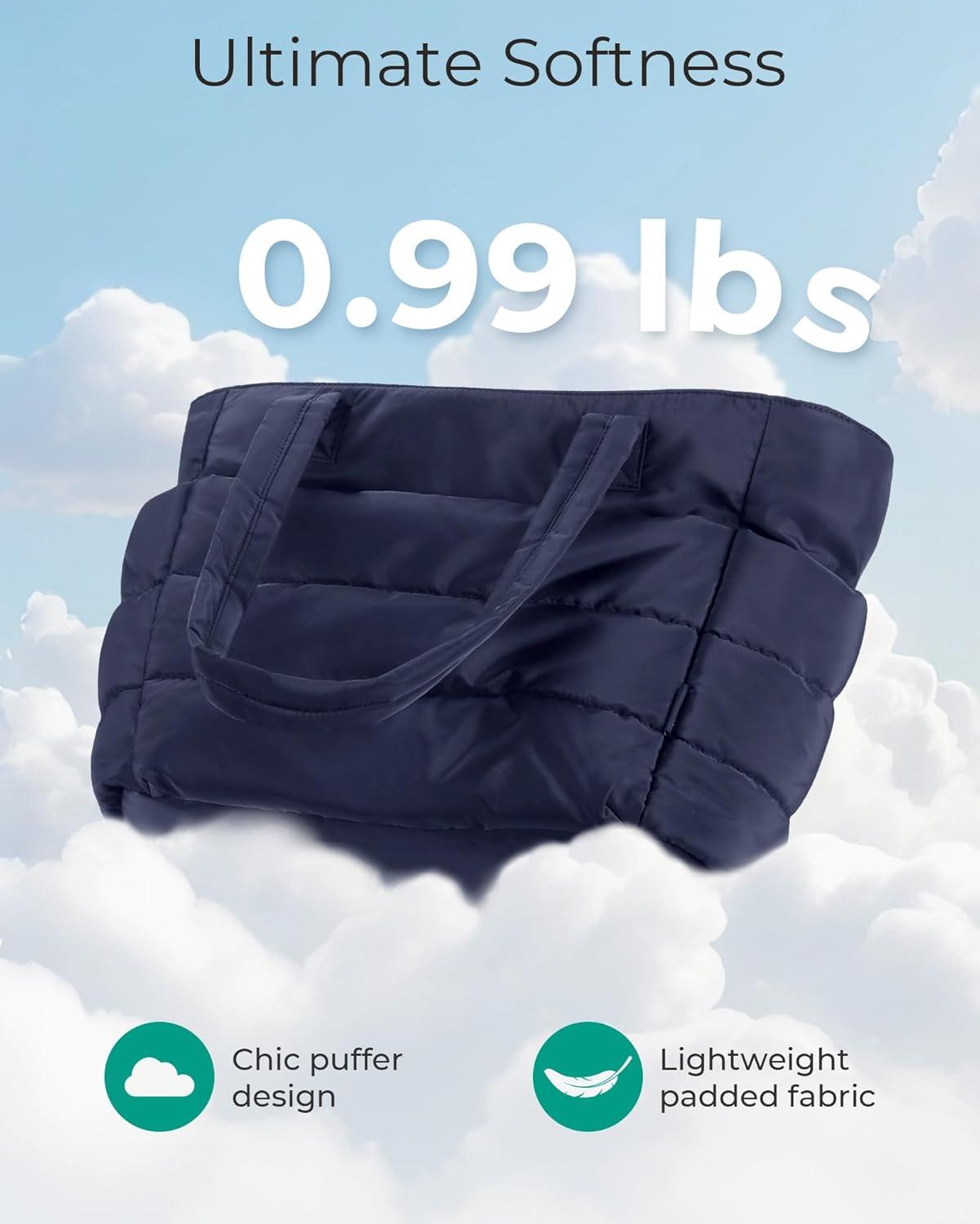 BAGSMART Tote Bag for Women, Lightweight Puffy Tote Bag with Compartments Shoulder Bag Handbag for Travel, Work, Gym | Lightweight, Puffy, Tote Bag with Compartments, Quilted, for Travel, Work(Navy Blue)
