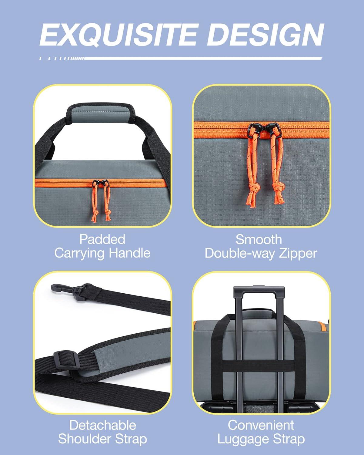 BAGSMART Large Travel Duffel Bag with Shoe Compartment, Puffer Carry-On Gym Weekender Bag for Women, Charcoal(Faint Yellow)