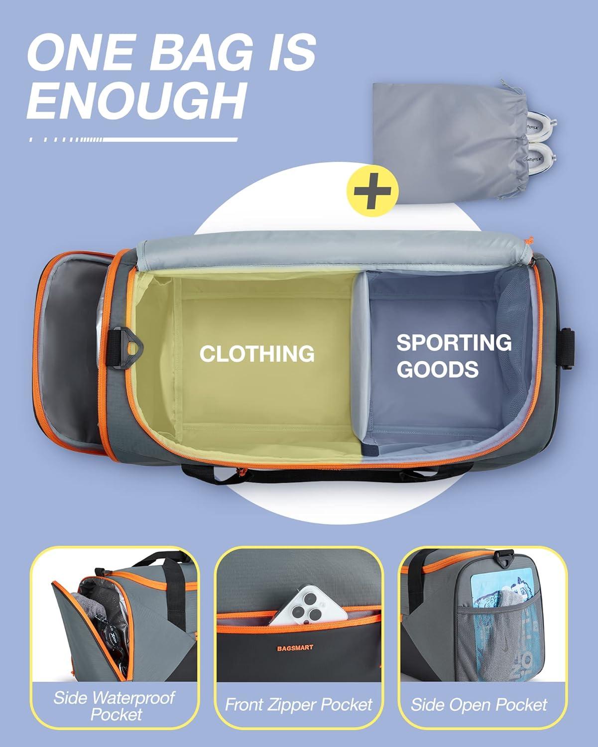 BAGSMART Gym Bag with Shoe Compartment – 29L Personal Travel Duffle Bag for Women & Men – Weekender Overnight Carry On Bag