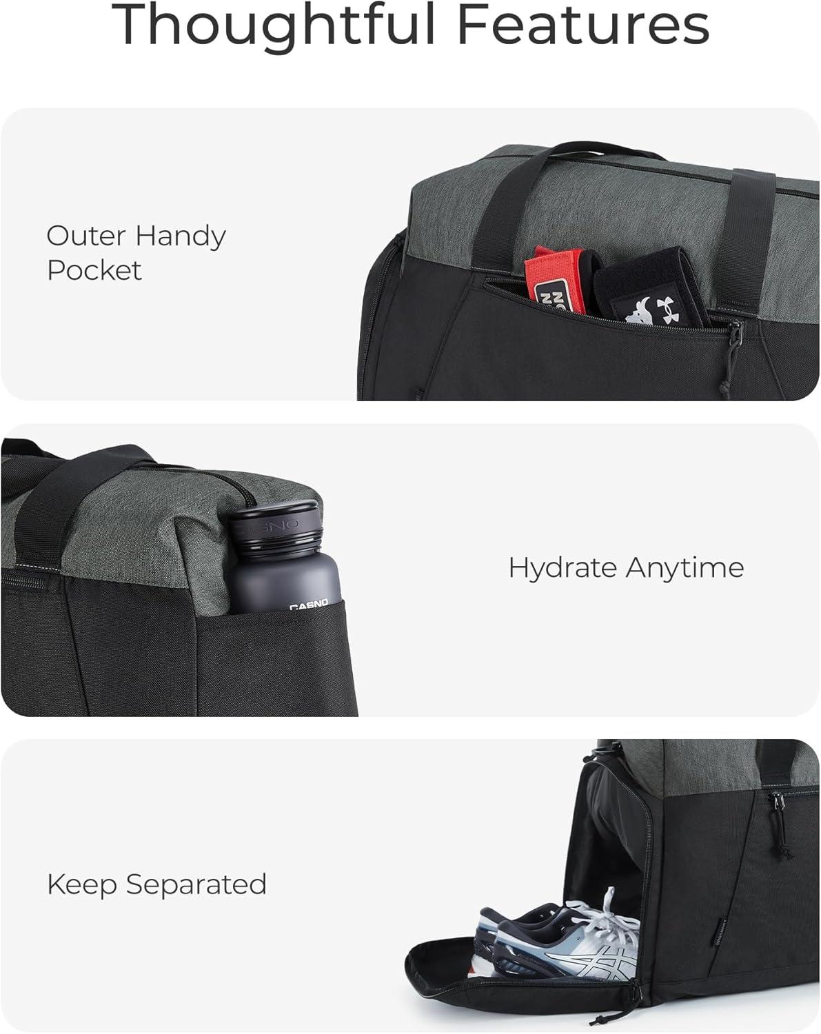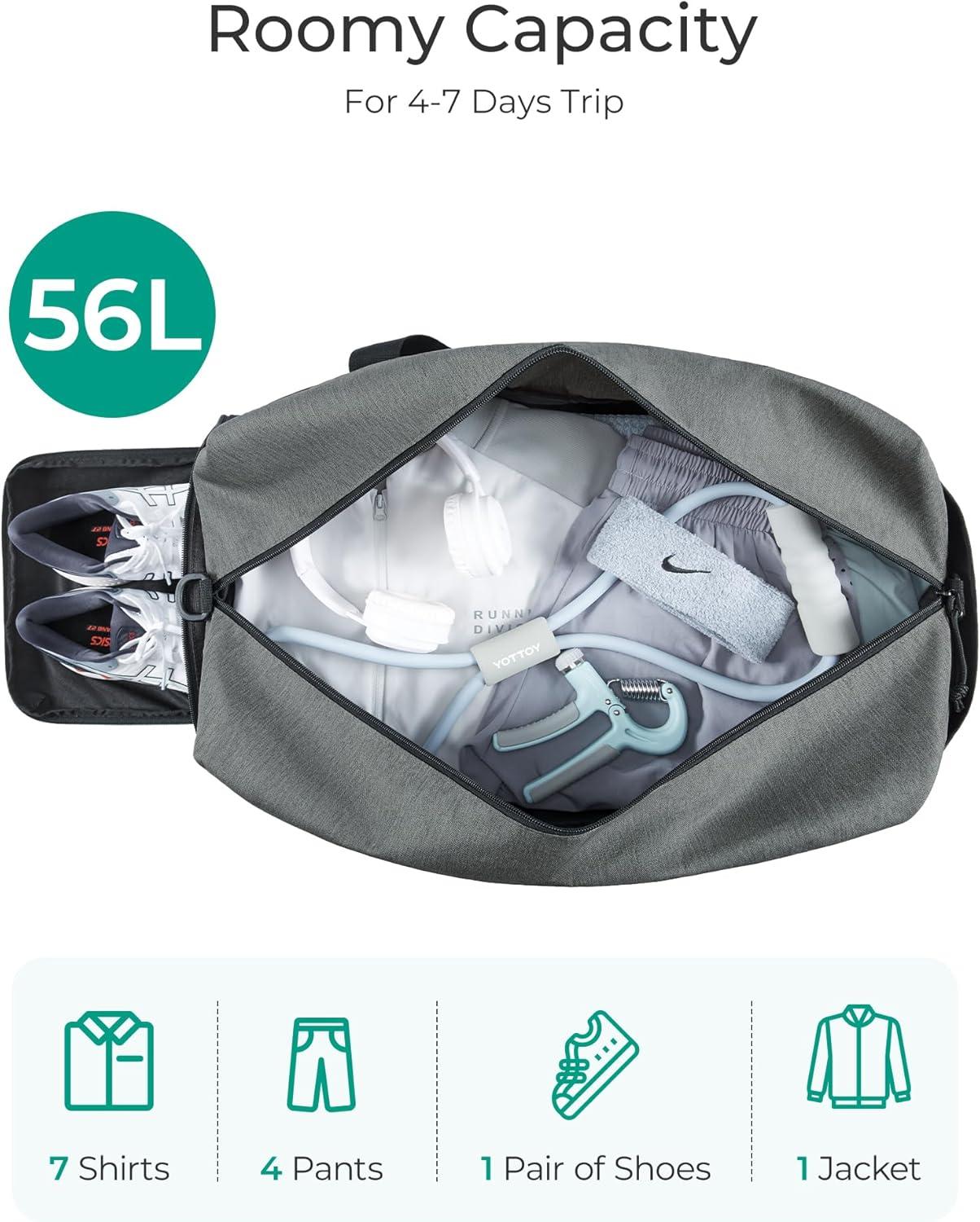 BAGSMART Gym Bag, 31L Sports Travel Duffle Bag With Shoe Compartment, Waterproof Gym Duffel Bag for Men&Women Travel, Carry On Weekender Workout Bag, Grey