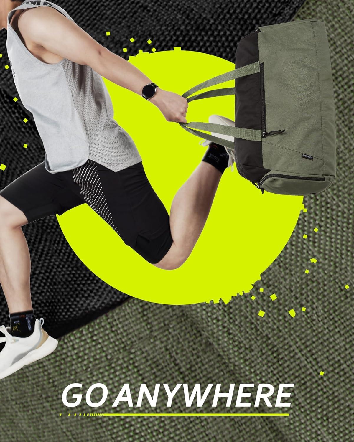 BAGSMART Gym Bags for Men Women, Foldable Travel Duffle Bag, Lightweight Weekender Duffel Bag With Shoe Compartment, Water Resistant Workout Duffle Sports Bag for Travel Yoga, Black(Army Green)
