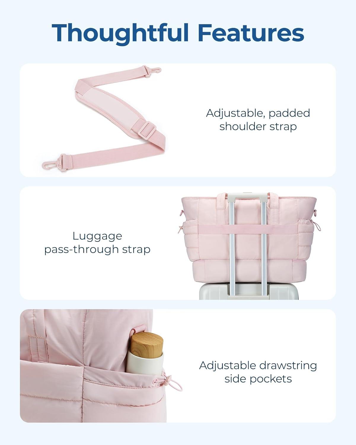 BAGSMART Large Travel Duffel Bag with Shoe Compartment, Puffer Carry-On Gym Weekender Bag for Women, Faint Yellow(Faint Yellow)