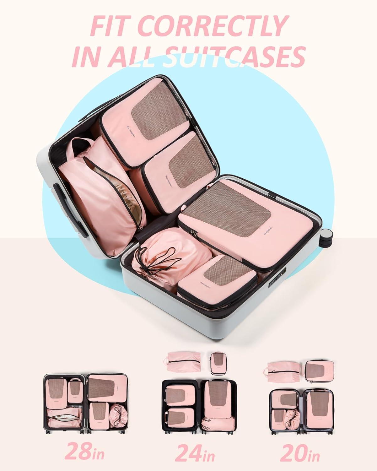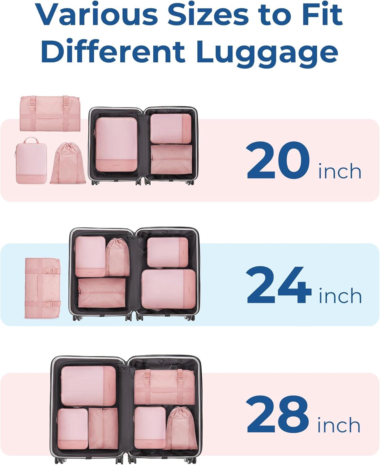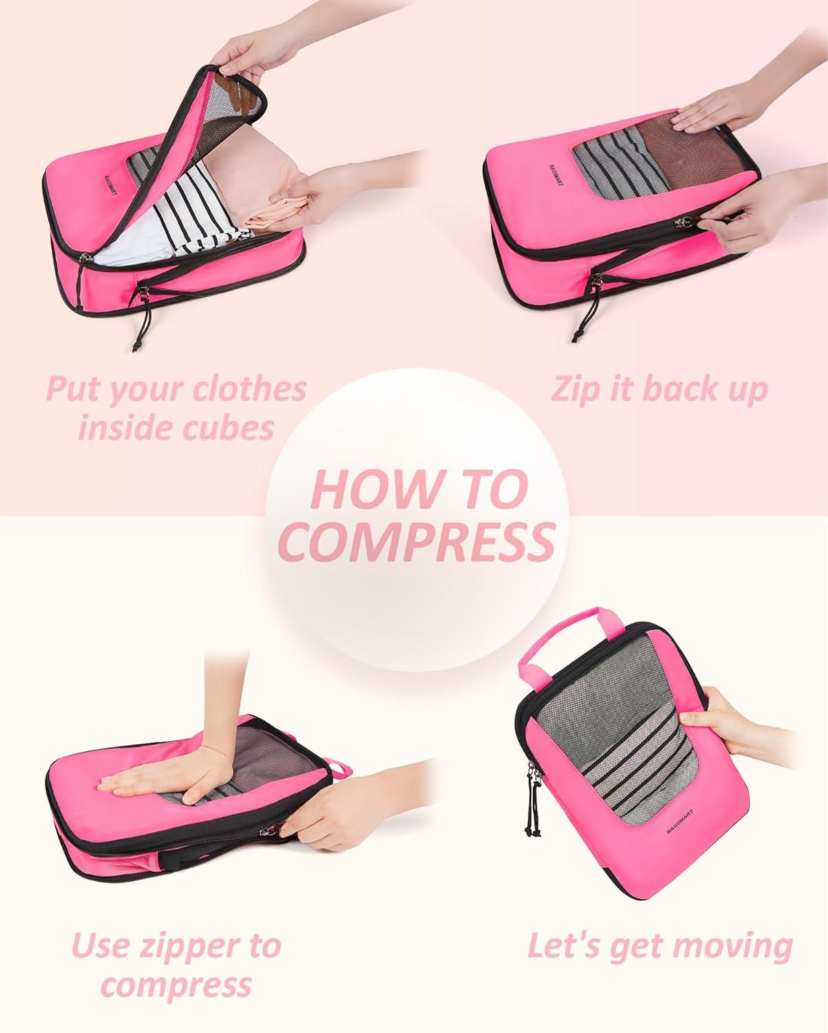 • BAGSMART Compression Packing Cubes, Travel Cubes for Packing, 6/5/4 Set Suitcase Organizer Bags Set, Lightweight Packing Organizers(M-Barbie Powder)