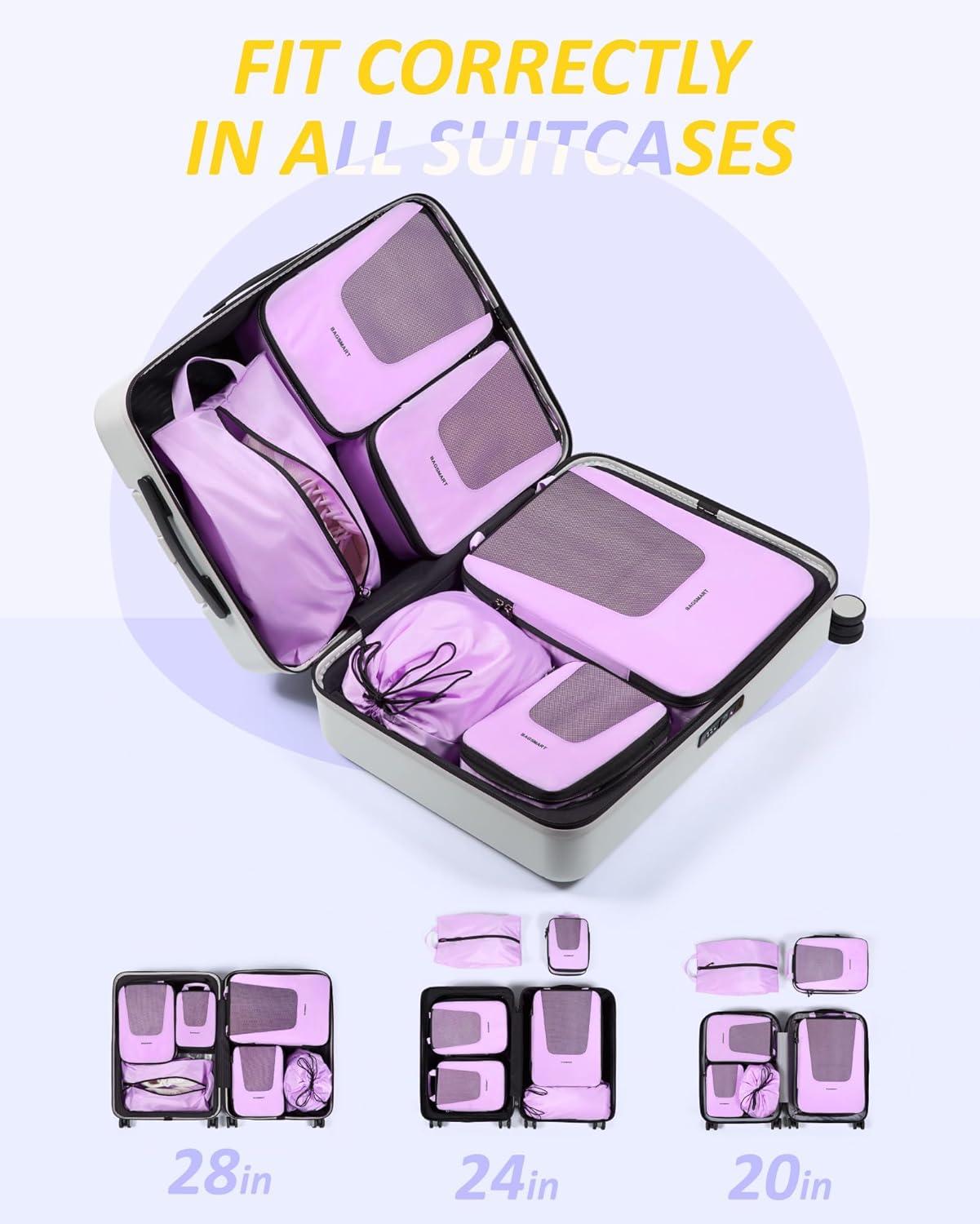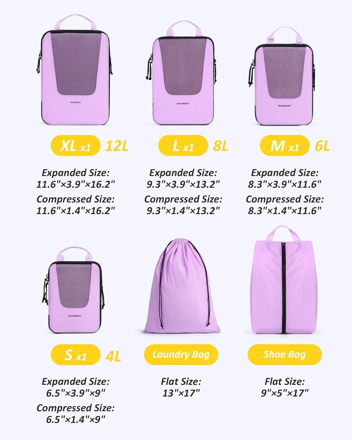 • BAGSMART Compression Packing Cubes, Travel Cubes for Packing, 6/5/4 Set Suitcase Organizer Bags Set, Lightweight Packing Organizers(I-Light Purple)