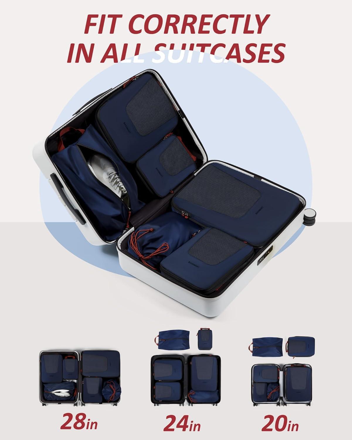 • BAGSMART Compression Packing Cubes, Travel Cubes for Packing, 6/5/4 Set Suitcase Organizer Bags Set, Lightweight Packing Organizers(K-Navy)