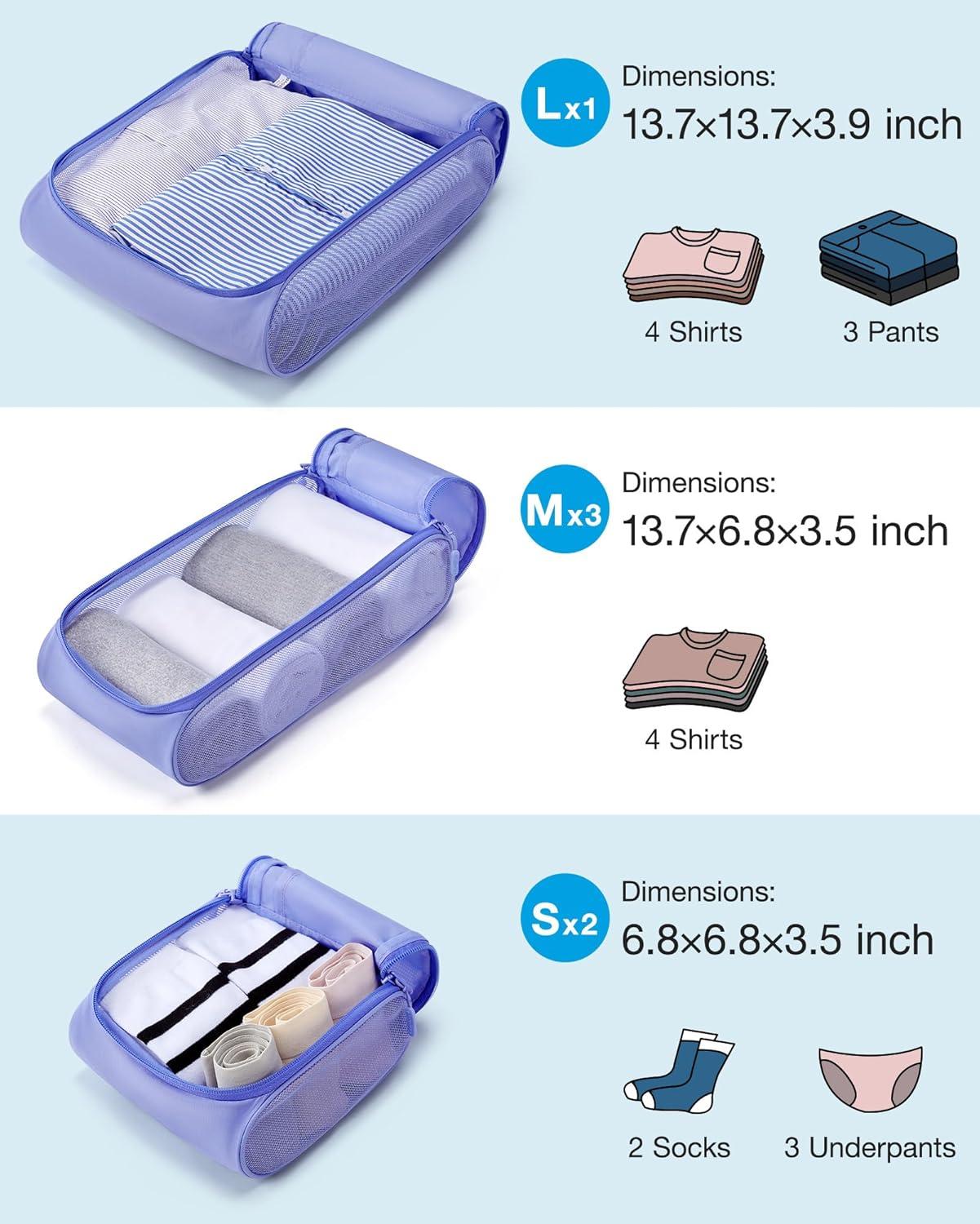 • BAGSMART Compression Packing Cubes, Travel Cubes for Packing, 6/5/4 Set Suitcase Organizer Bags Set, Lightweight Packing Organizers(C-Light Blue)