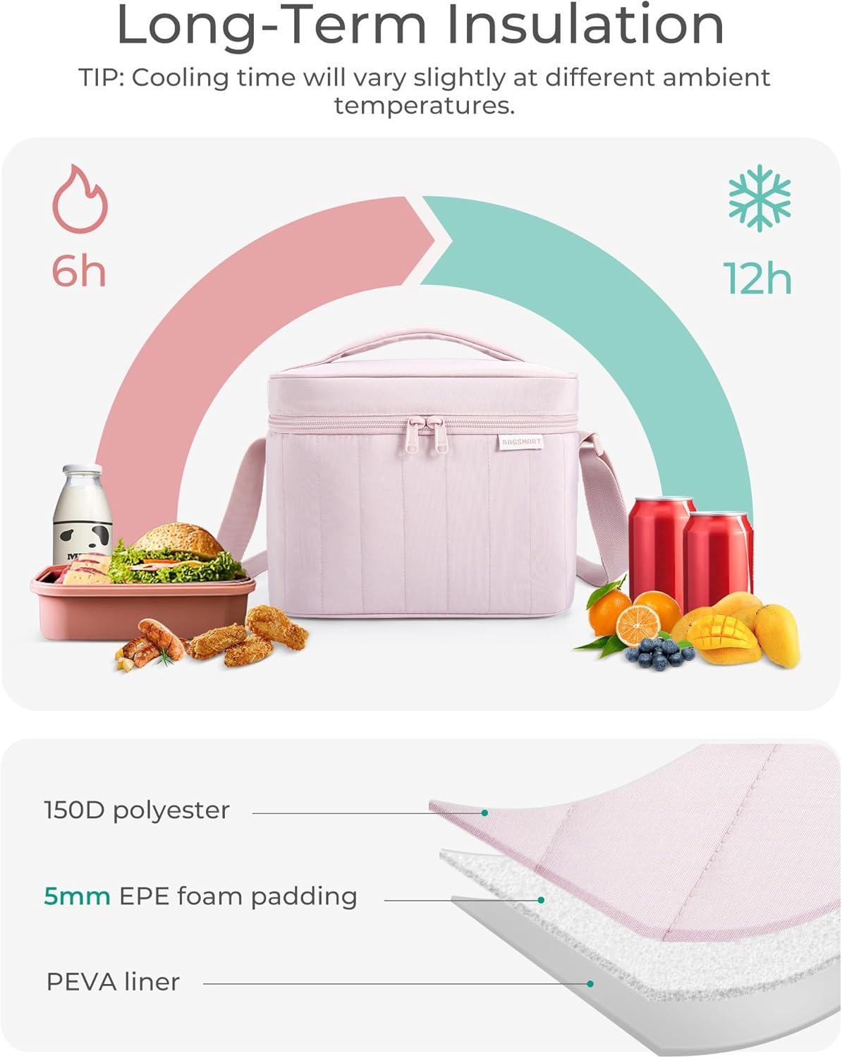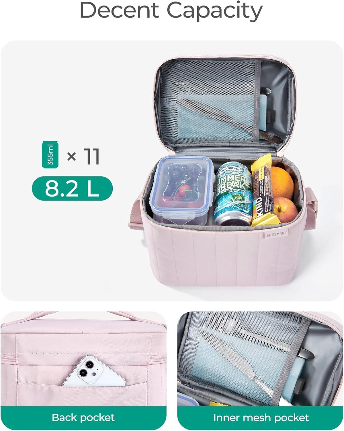 BAGSMART Lunch Box for Women Insulated Lunch Bag Cute Puffer Lunch Tote Bags Lightweight Quilted Reusable Cooler for Work School Picnic or Travel, Dusky Pink(Dusky pink)