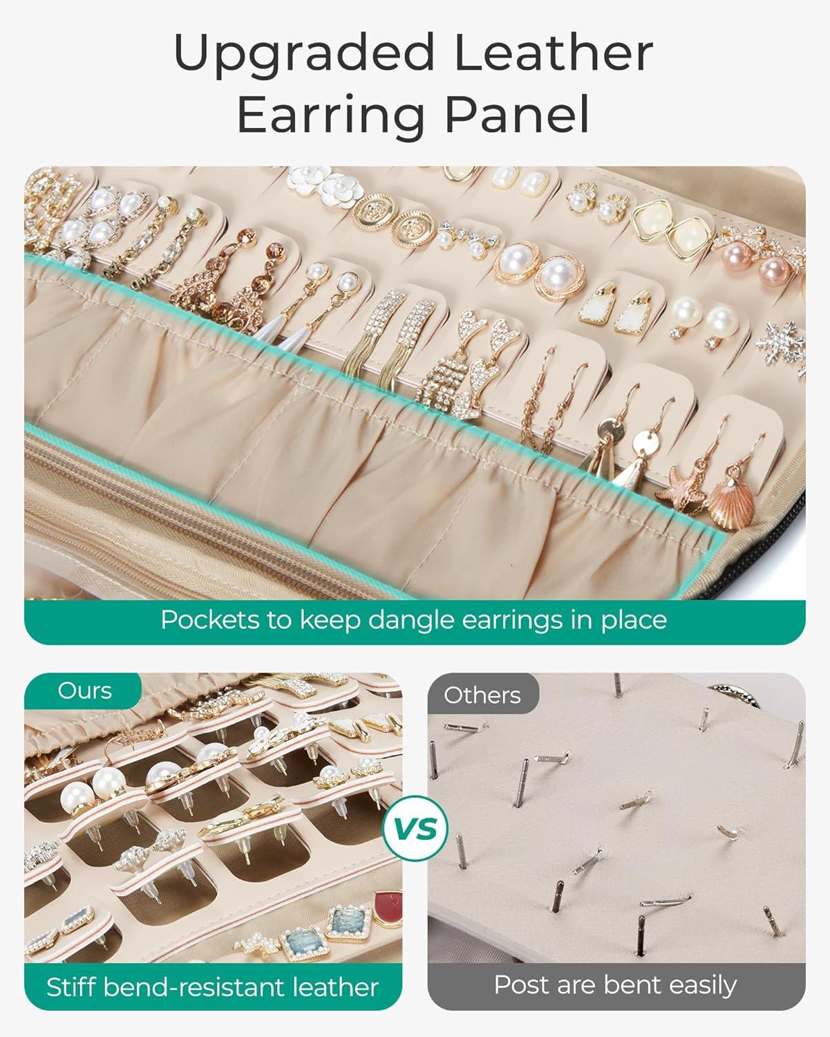 BAGSMART Travel Jewelry Case Jewelry Box Organizers and Storage Earings Holder Organizer for Women for Necklaces, Bracelets, Rings-Beige(A-Beige)