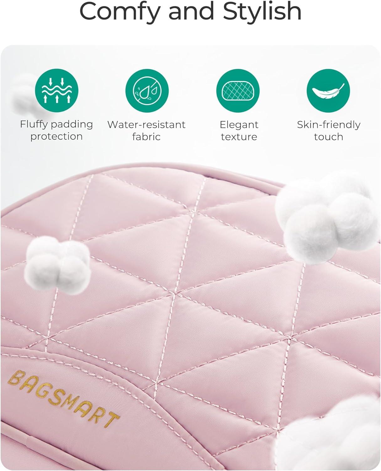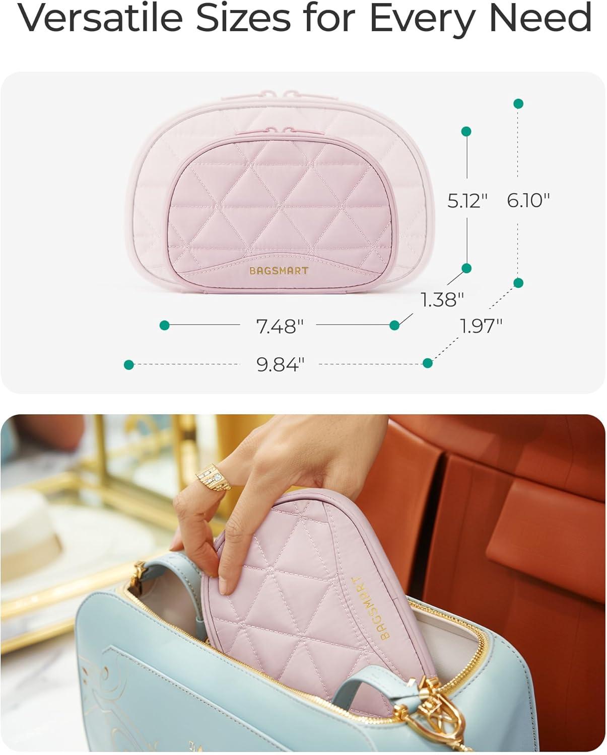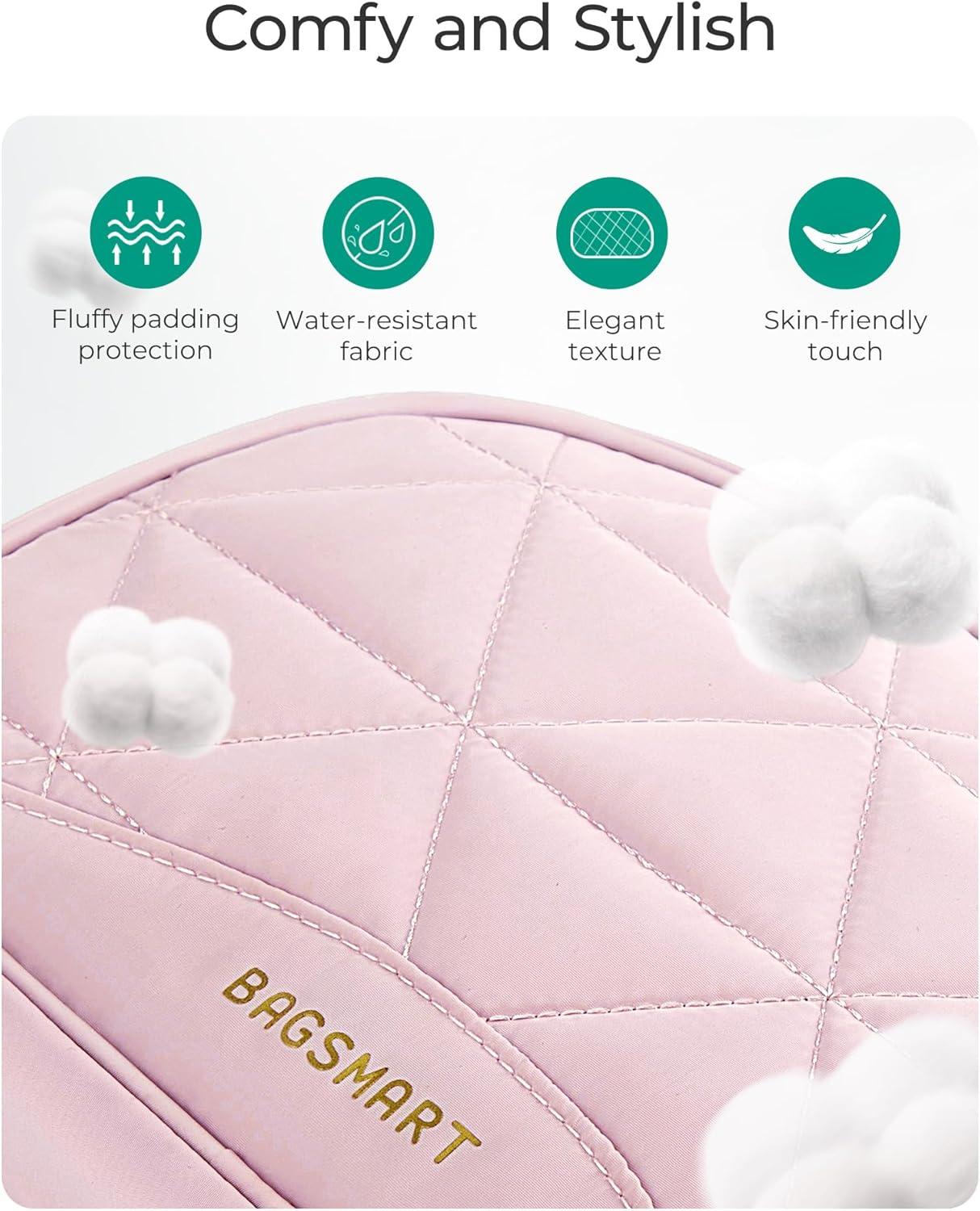 BAGSMART Makeup Bag Travel Cosmetic Bag, Puffy Padded Make Up Bags for Women Makeup Organizer Case, Wide-open Pouch Purse Travel Essentials Toiletries Accessories Brushes (Pink)(B-Pink)