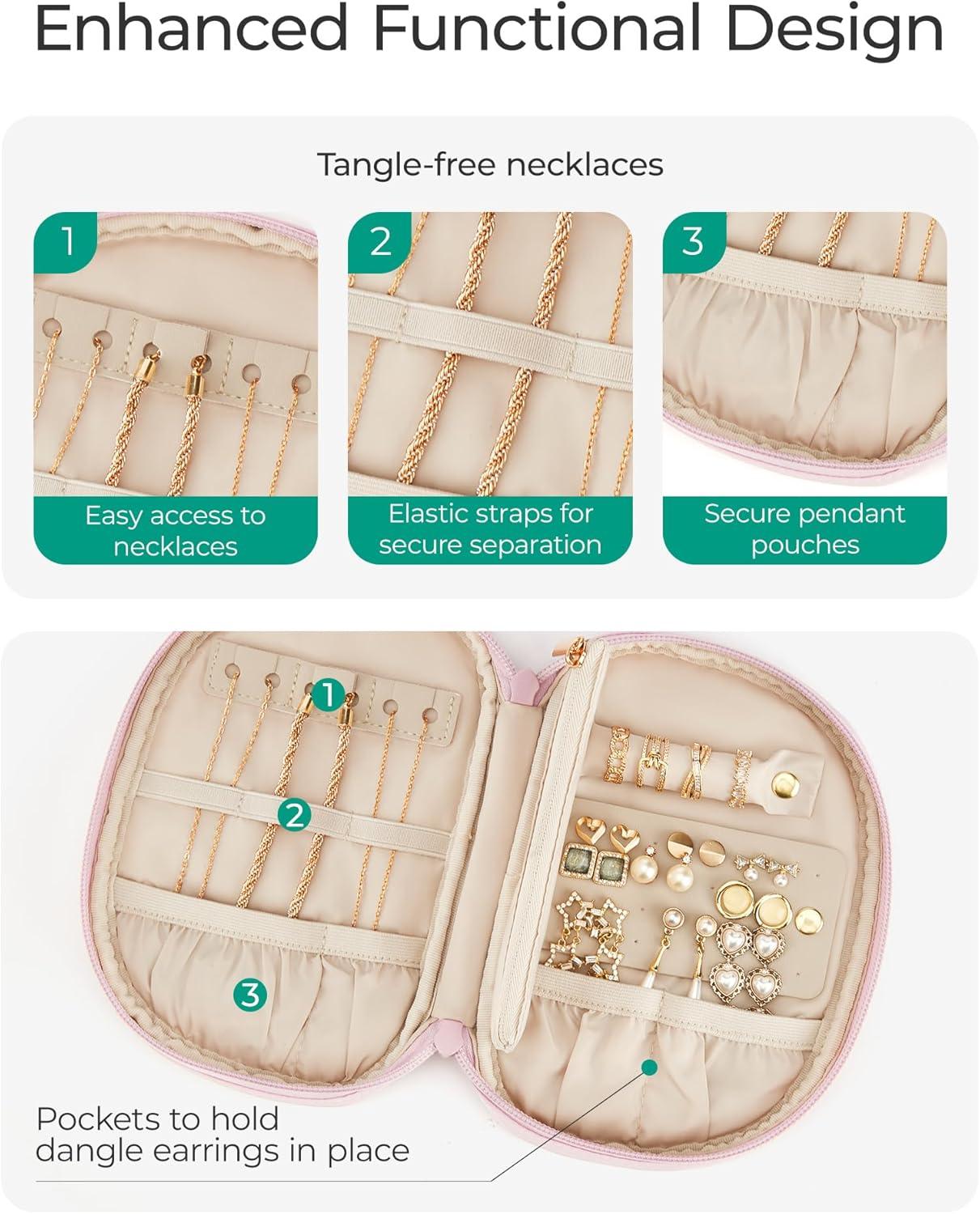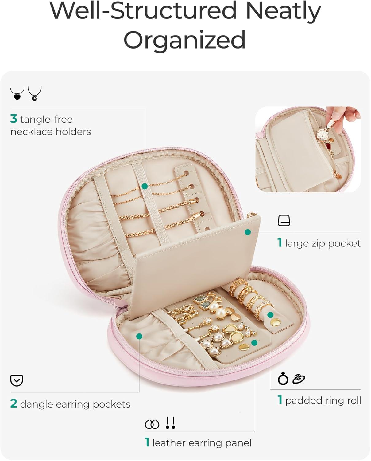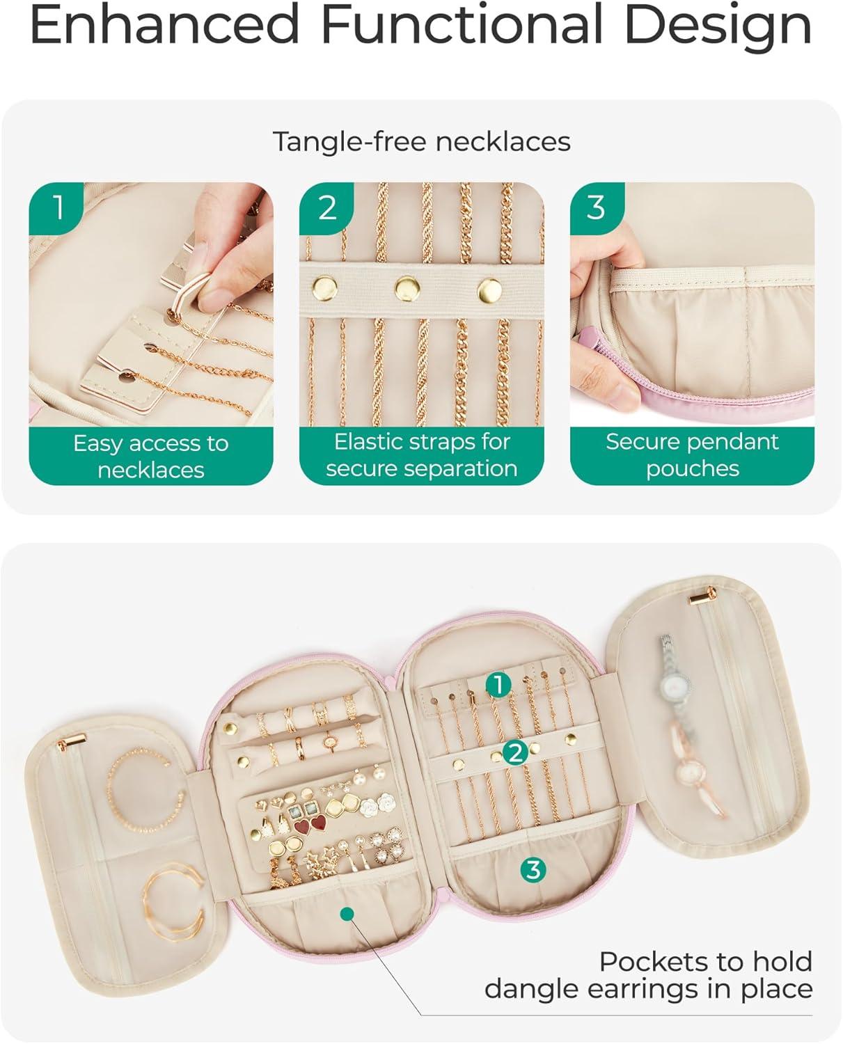 BAGSMART Travel Jewelry Case Jewelry Organizer Storage Roll Rings Necklaces Earrings Bracelets Brooches Watch Large Portable Light Pink(A-Light Pink)