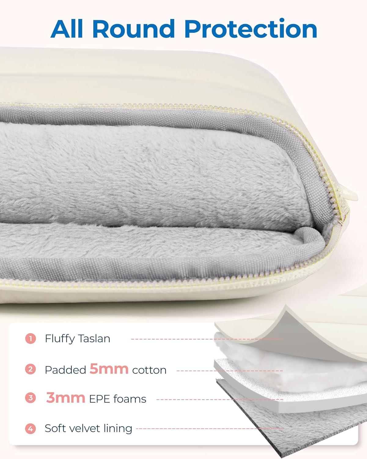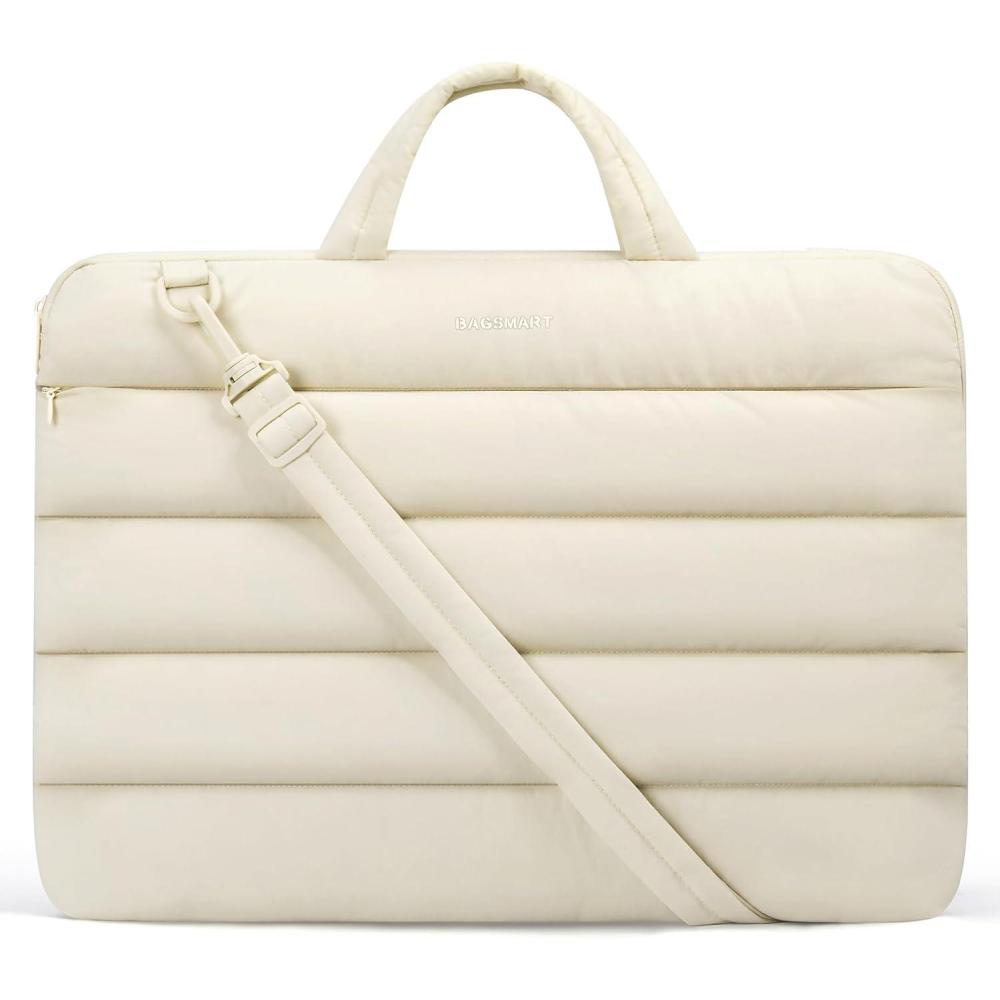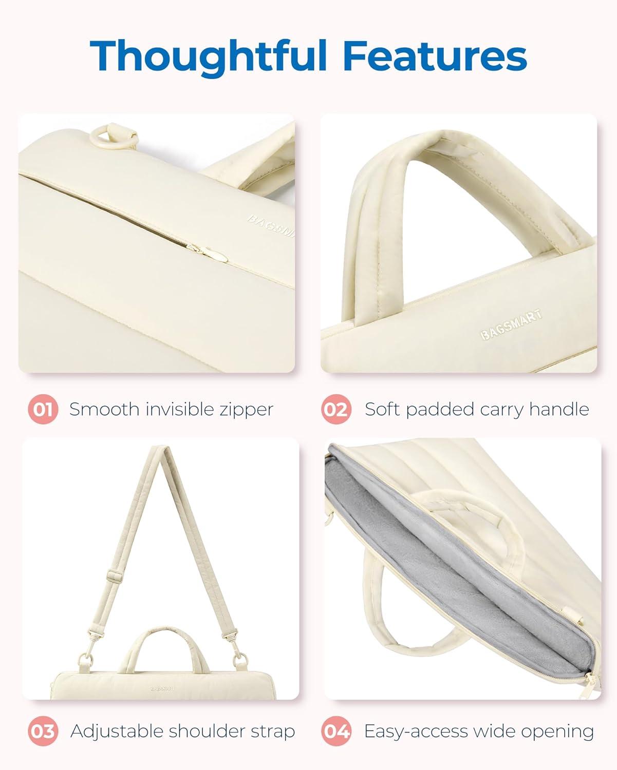 BAGSMART 13-14 inch Laptop Sleeve Bag with Strap, Puffy Padded Laptop Case with Pocket, Portable MacBook Air/Pro 13 inch Case for Women, Repellent Protective Sleeve Compatible with Dell, HP, Beige(Air Beige)