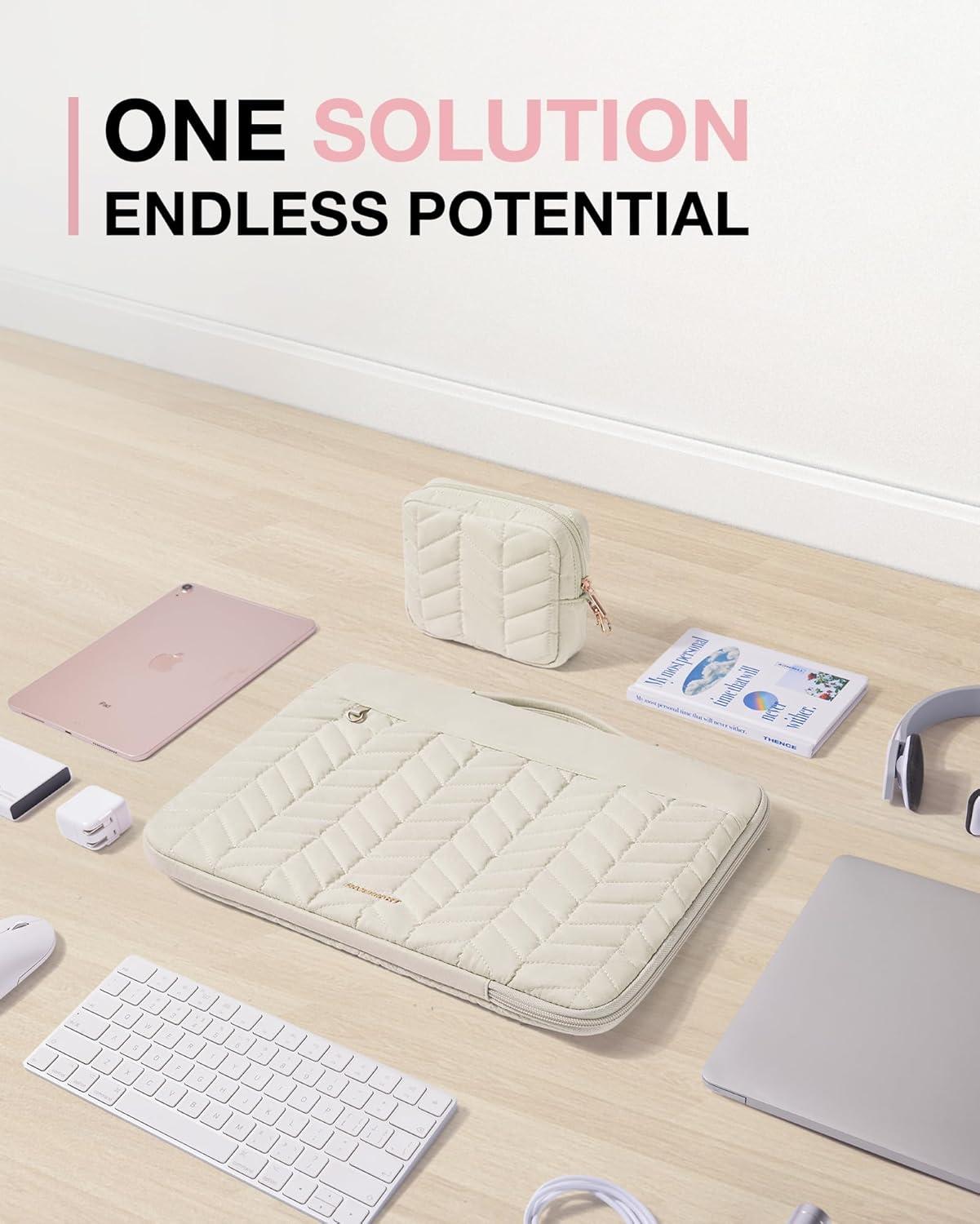 BAGSMART 15-16 inch Laptop Case with Handle, Puffy Padded Laptop Bag Sleeve for Women, Portable MacBook Air/Pro Case Compatible with Dell, HP, Lenovo, ASUS, Acer, Huawei Computer, Black(With Accessories-Beige)