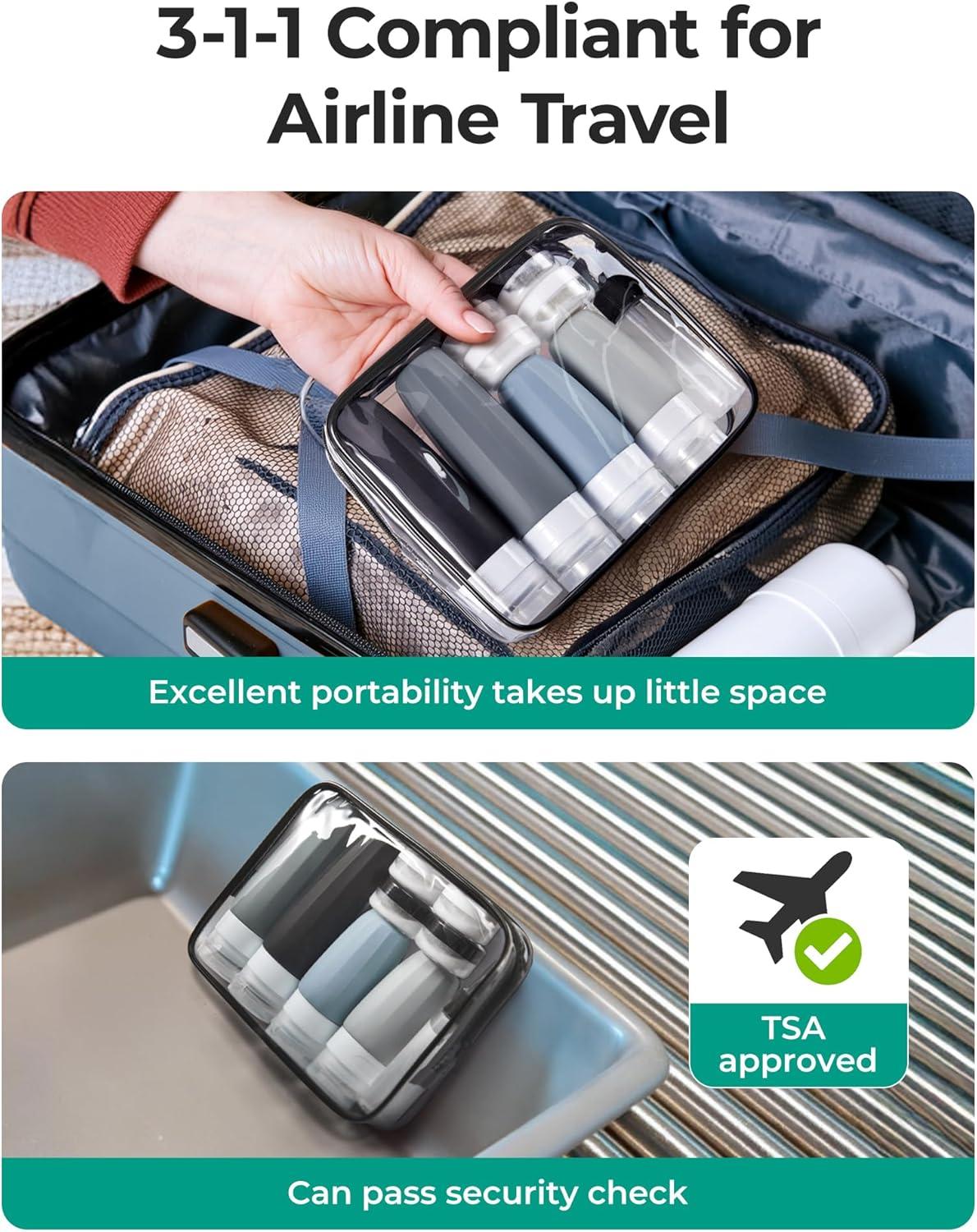 ๐๐๐ ๐๐ฉ๐ฉ๐ซ๐จ๐ฏ๐๐ ๐๐ซ๐๐ฏ๐๐ฅ ๐๐จ๐ญ๐ญ๐ฅ๐๐ฌ: Travel size bottles are ideal for travelling through airline, all travel accessories are packed in a handy bag, fits in any small space, easy to take on the go and save your toiletry space
