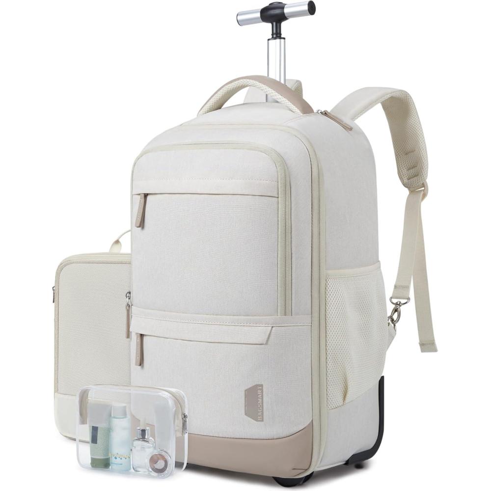 BAGSMART 37L Compression Travel Backpack, Expandable Carry On Backpack with Packing Cubes, Water Resistant Weekender Backpack Fits 17 Inch laptop, Luggage Daypack with Shoe Bag, Grey(Beige With Wheels)