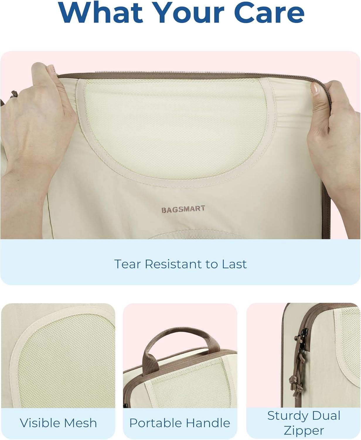 BAGSMART 6 Set Packing Cubes for Suitcases, Lightweight Suitcase Organizers & Compression Travel Cubes(02-White Opal)
