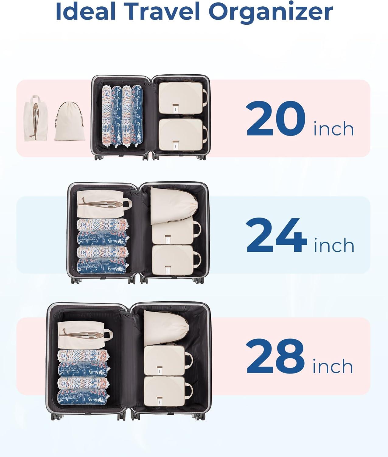 BAGSMART 8 Pcs Compression Packing Bags Set with 4 Pack Vacuum Bags Storage for Cruise Travel Essentials, Hand-rolled Space Saver Vacuum Storage Bags, Baby Pink