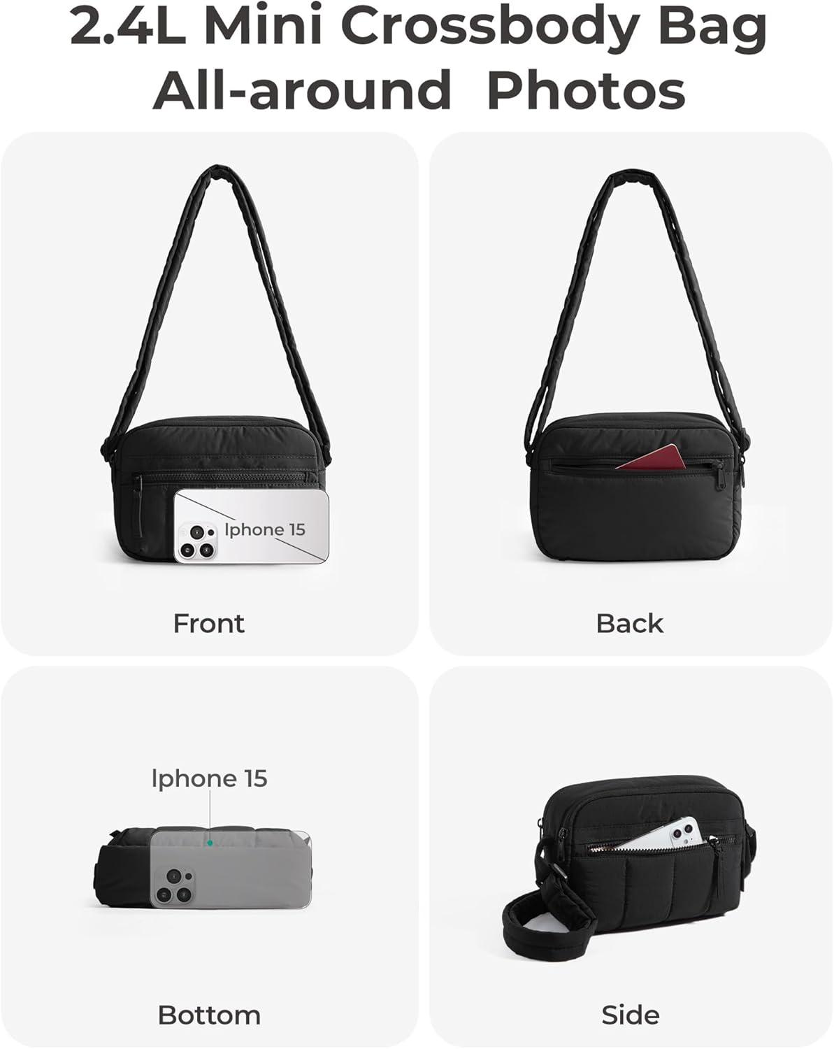Material & Size: Lightweight & water-resistant puffy travel purse (just 0.6lbs)! Compact size 10.6''x3.7''x7.3'' with 4.7L capacity – perfect daily essentials