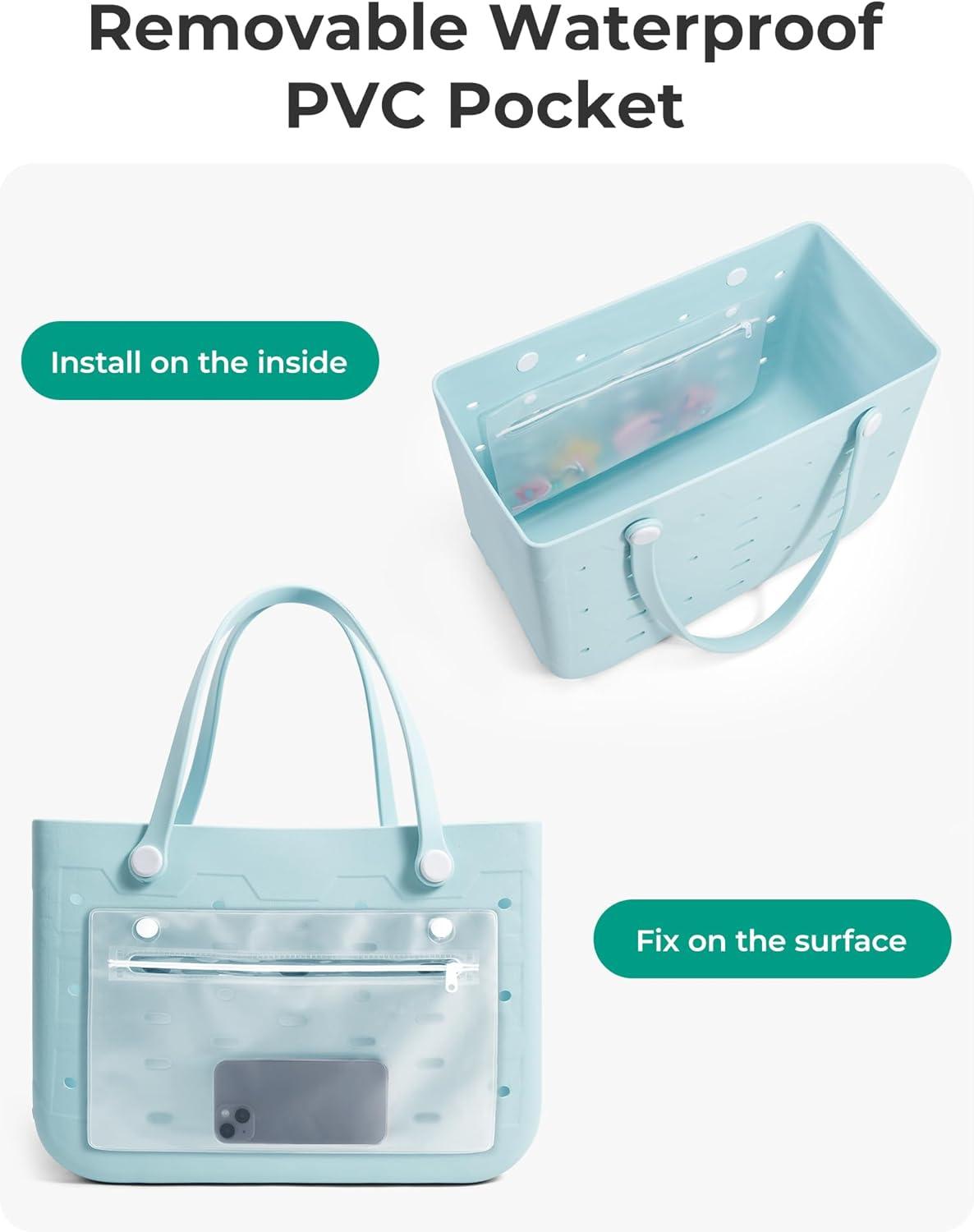 BAGSMART Beach Bag for Women, Water-resistant Rubber Tote Bag, Sandproof Vacation Essentials for Summer Swim Cruise Pool(Baby Blue)