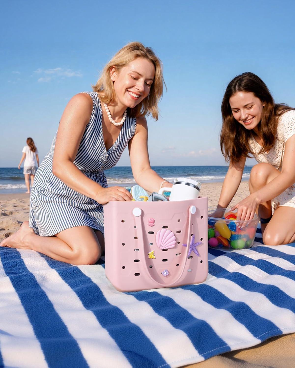BAGSMART Beach Bag for Women, Water-resistant Rubber Tote Bag, Sandproof Vacation Essentials for Summer Swim Cruise Pool(M-purple Breeze)