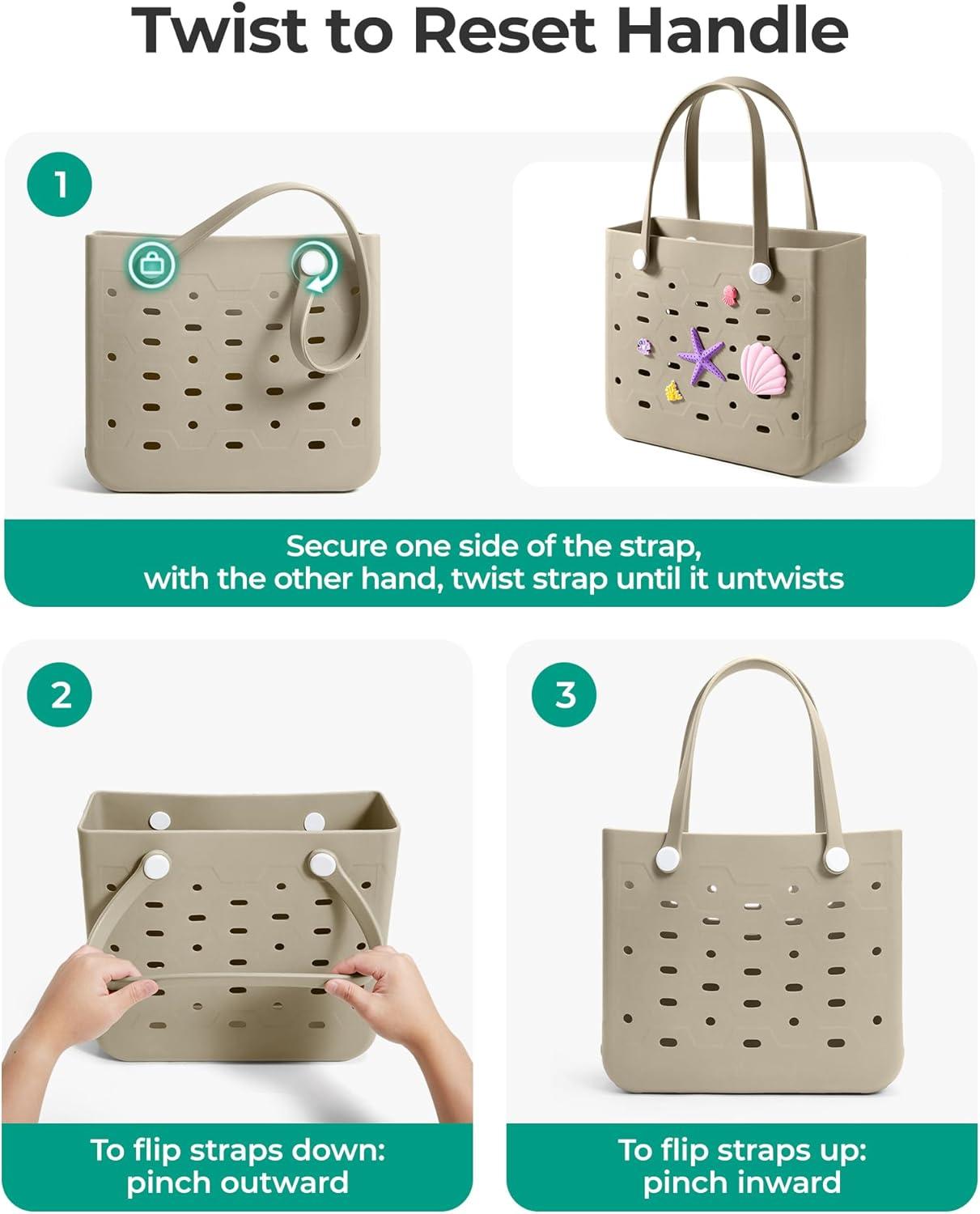 BAGSMART Beach Bag for Women, Water-resistant Rubber Tote Bag, Sandproof Vacation Essentials for Summer Swim Cruise Pool(M-sea Glass Sage)