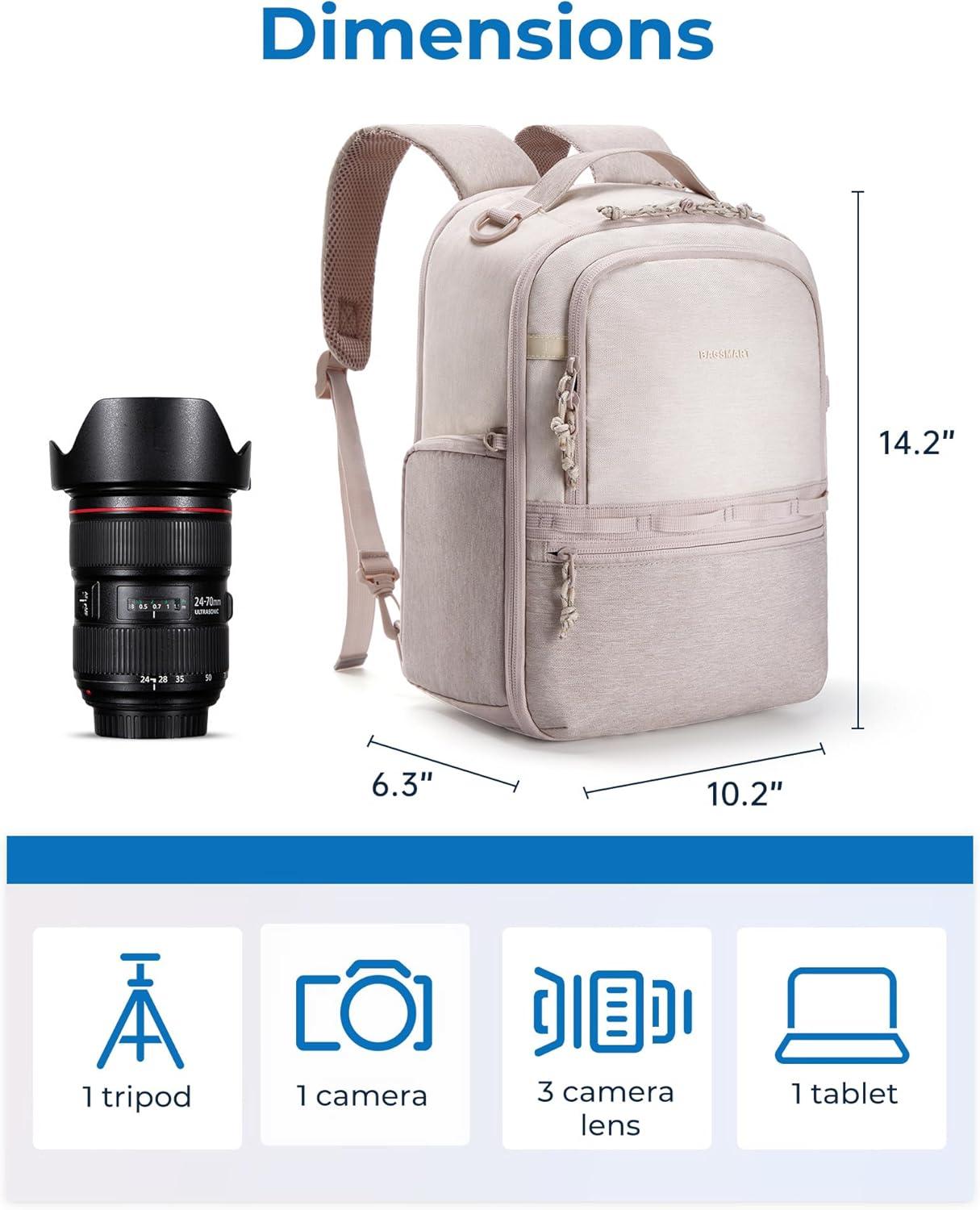 BAGSMART Camera Backpack, DSLR SLR Small Camera Bags for Photographers Compatible for Sony Canon Nikon, Shoulder Strap 2-in-1 Travel Backpack Fits 12.9″ iPad, Gray(Beige)
