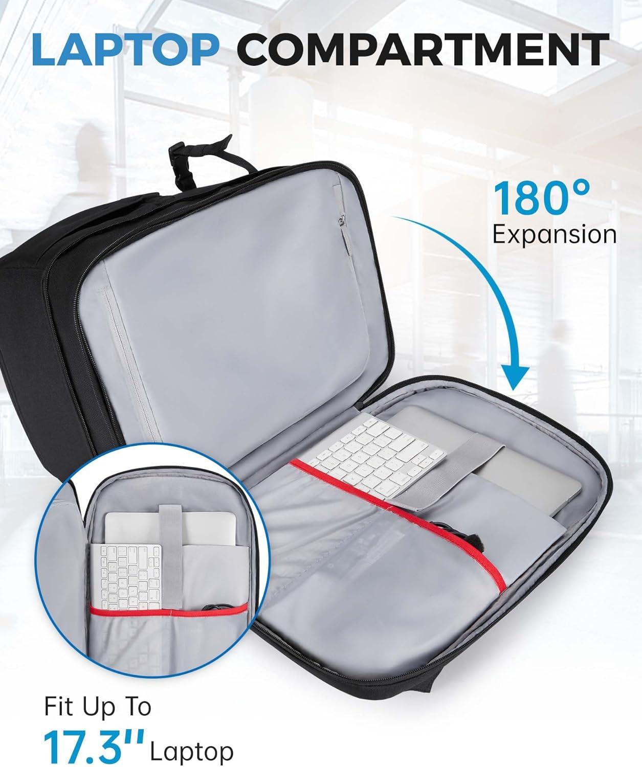 WHAT TO CARRY: It can transform to a travel backpack in an instant by unfold the expandable compartment and removing internal dividers. A TSA-friendly 17.3” laptop/electronic compartment with high-density foam that provide exceptional shock absorption. A tripod holder on the side enables you to always have your travel tripod with you. There is also plenty of space for your personal belongings in the front zipper pocket and the diviced compartment