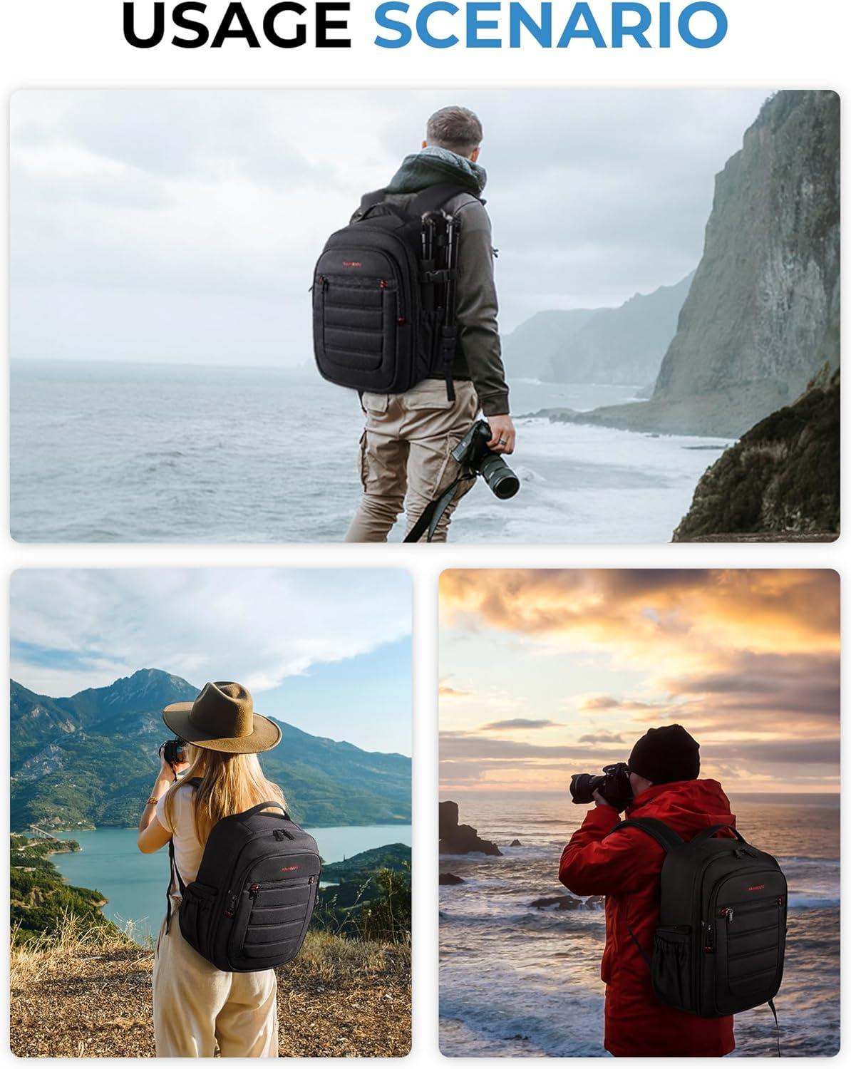 BAGSMART Camera Backpack, Expandable DSLR SLR Camera Bags for Photographers, Photography Travel Backpack with 15.6″ Laptop Compartment, Rain Cover & Tripod Holder, Black(Black)