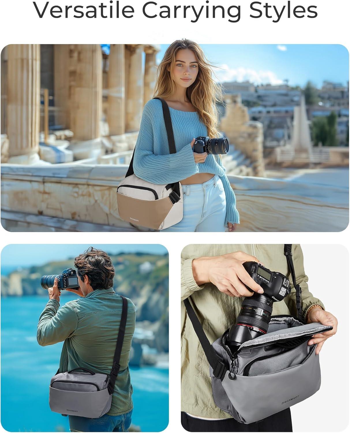 BAGSMART Camera Sling Bag, Small Camera Bags for Photographers with Tripod Holder, Waterproof DSLR/SLR/Mirrorless Camera Bags Crossbody with Rain Cover, Compatible with Canon Sony Nikon, Beige(Beige)