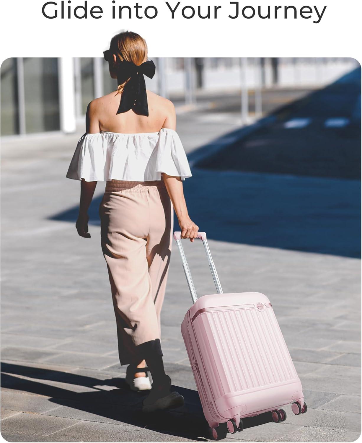 Effortless Mobility: Our suitcases with wheels is equipped with 8 multi-directional ball-bearing 360° spinner wheels, offering unparalleled maneuverability. Designed for quiet operation and durability, these wheels glide effortlessly across any surface, from airport terminals to city streets. Combined with a four-level adjustable aluminum handle and soft silicone grips, navigating through crowded spaces is smooth and comfortable.