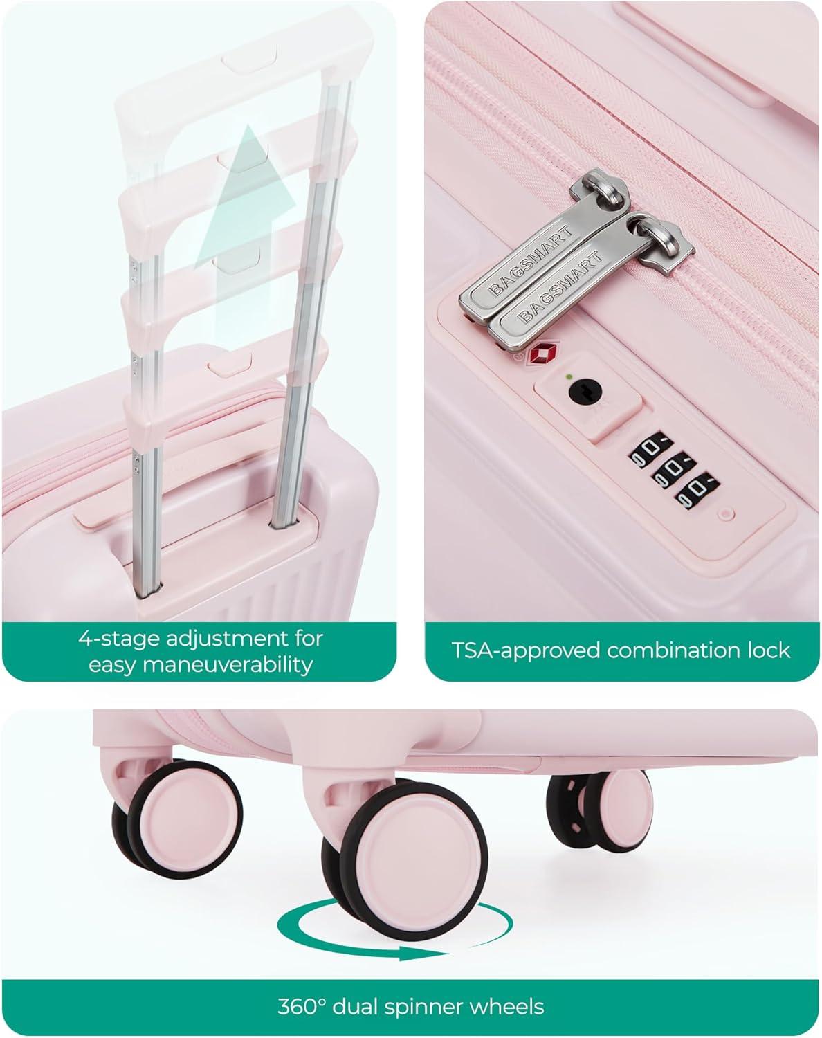 BAGSMART Carry On Luggage 22x14x9 Airline Approved with Spinner Wheels, Travel TSA Approved 100% PC Hard Shell Suitcases, 20 Inch Expandable Luggage with TSA Lock, Dark Sea Green(Atlas Pink)