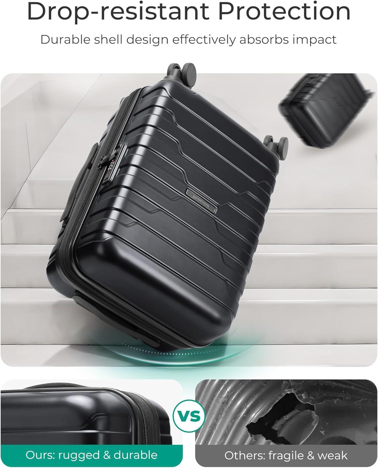 Excellent Craftsmanship: This hard shell carry on luggage is made of durable material for exceptional strength, flexibility, and lightness. The carry on luggage with wheels has passed the shock drop test. The hard shell luggage texture is extremely scratch-resistant and not easily scratched, keeping the hard case luggage looking great on trip after trip