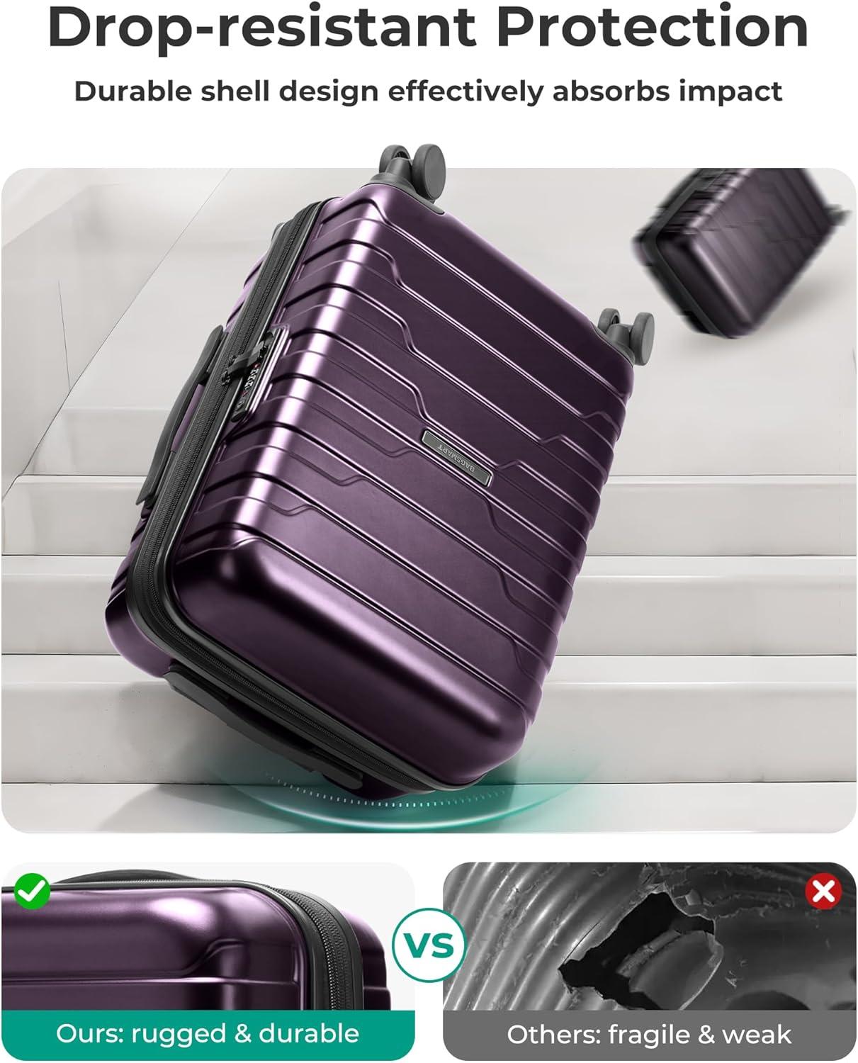 Excellent Craftsmanship: This hard shell carry on luggage is made of durable material for exceptional strength, flexibility, and lightness. The carry on luggage with wheels has passed the shock drop test. The hard shell luggage texture is extremely scratch-resistant and not easily scratched, keeping the hard case luggage looking great on trip after trip