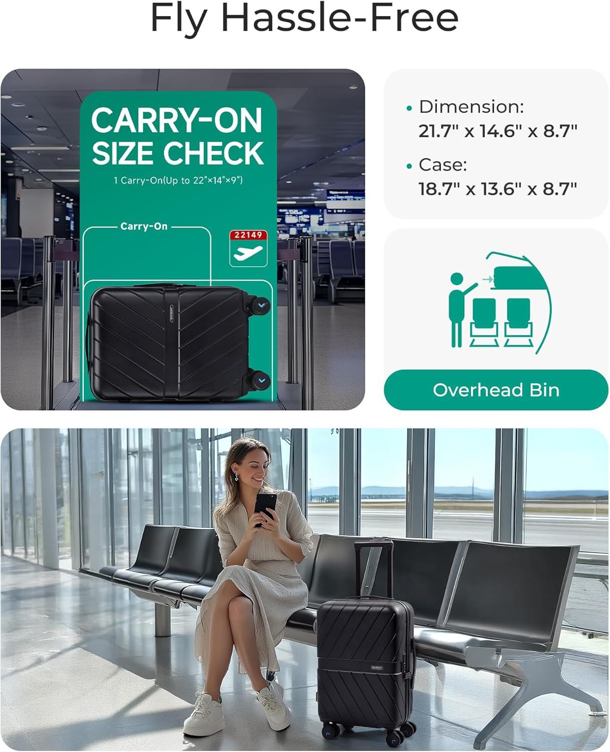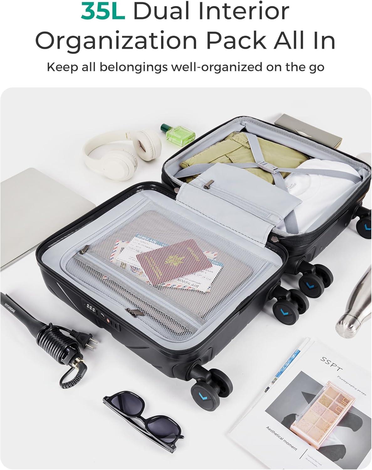 BAGSMART Carry On Luggage 22x14x9 Airline Approved With TSA Lock, 1OO% Polycarbonate Hardside Luggage with Spinner Wheels, Durable Hard Shell Carry On Suitcase 20 inch Black(Black)