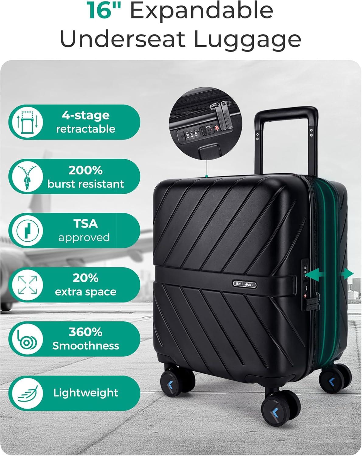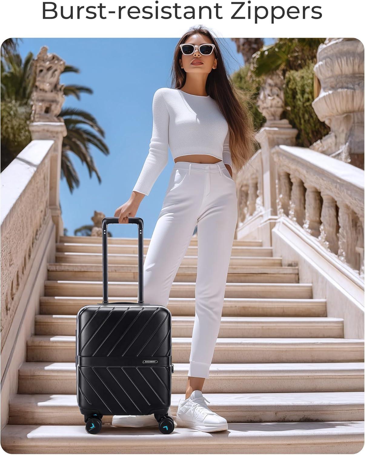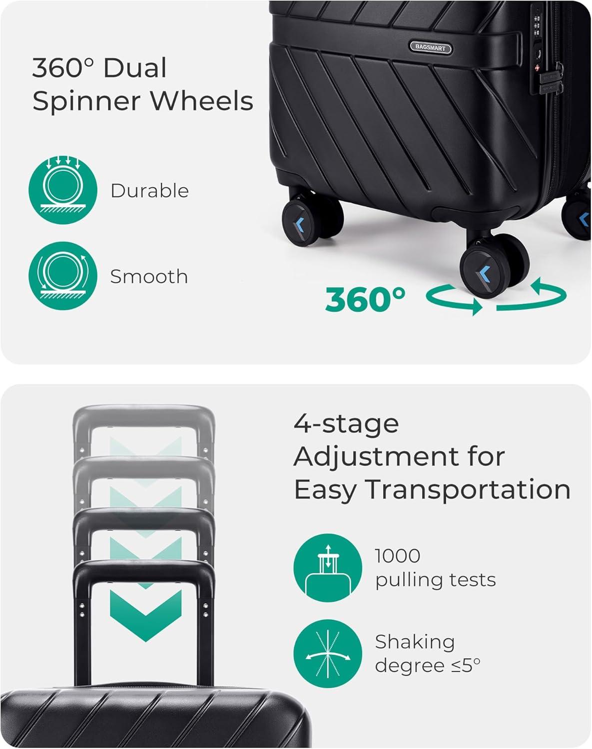 Premium Service And Warranty: BAGSMART will back each piece of tsa approved carry on luggage with a 5-year manufacturer's warranty. Before shipment, hard side luggage with spinner wheels undergoes thousands of rigorous tests to ensure that our carry on suitcase meets strict standards and can withstand any journey. If there is any quality problem, please feel free to contact us. Professional and patient customer service will reply to your satisfaction in time.
