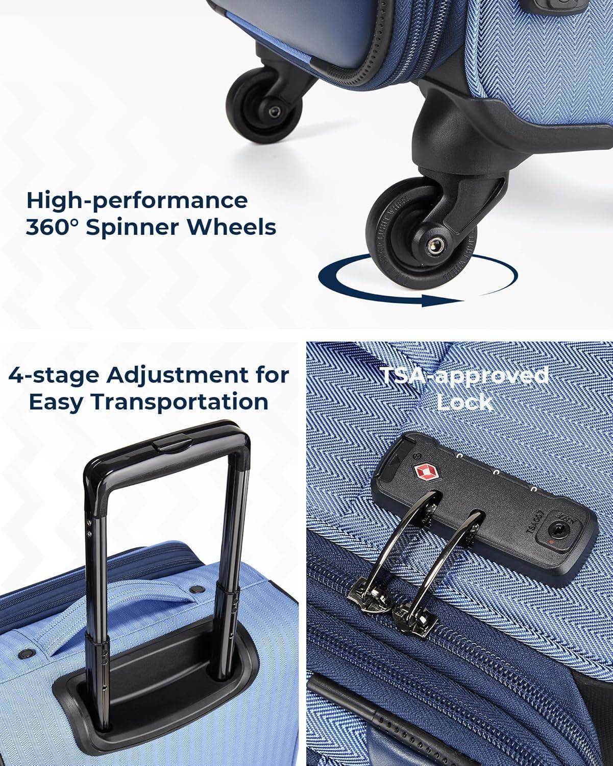 All In The Details: The 2-step ergonomic aluminum handle adjusts to multiple heights, while the 360° spinner wheels provide a sturdy base for smooth gliding, even when fully packed. Navigate through busy terminals, upgrade your travel experience.