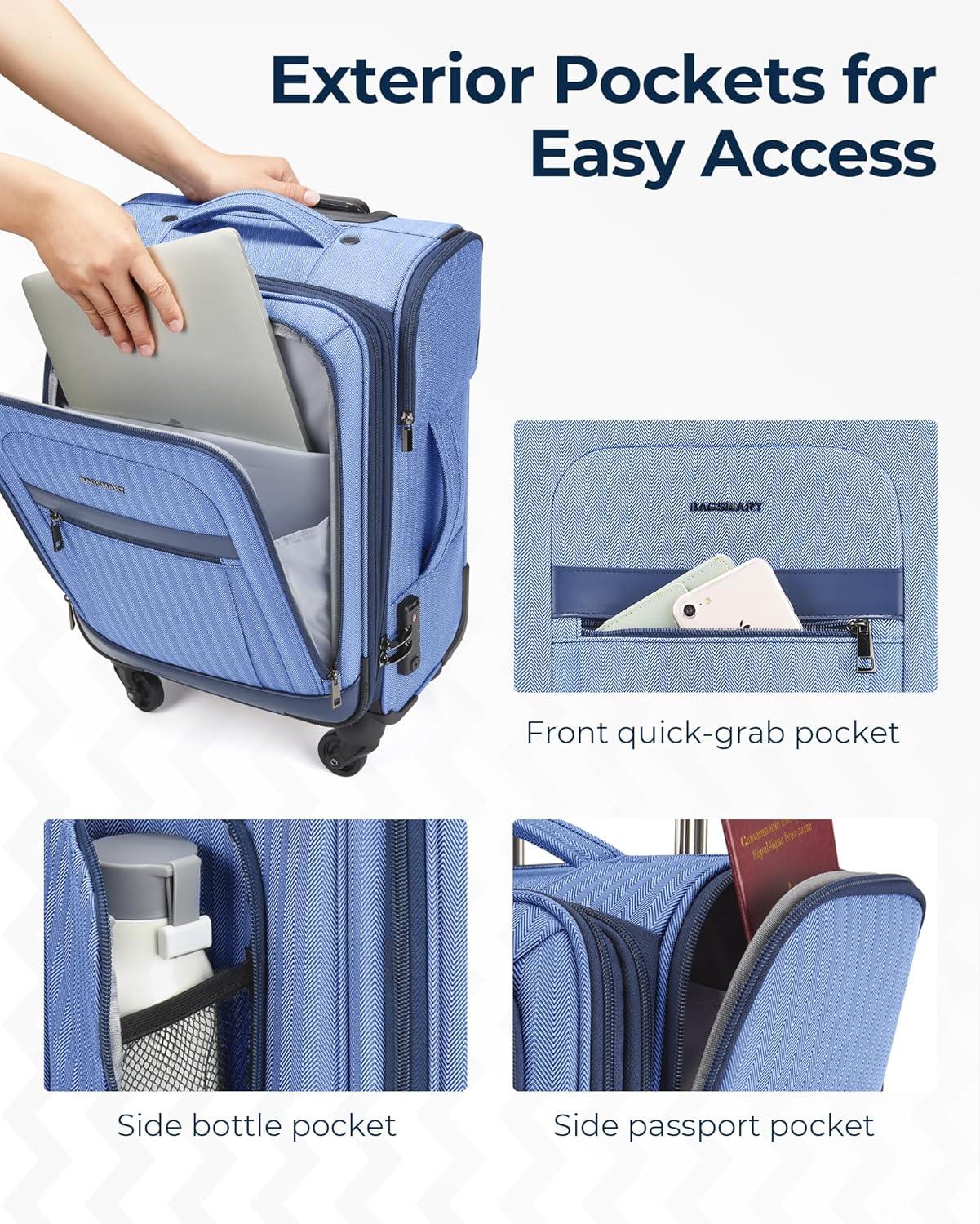 BAGSMART Carry-On Luggage Airline Approved, 20 inch Expandable Suitcase with Duffel bag, Softside Lightweight Suitcases with Spinner Wheels, Durable Travel Luggage, Carry-On Gray(Blue)